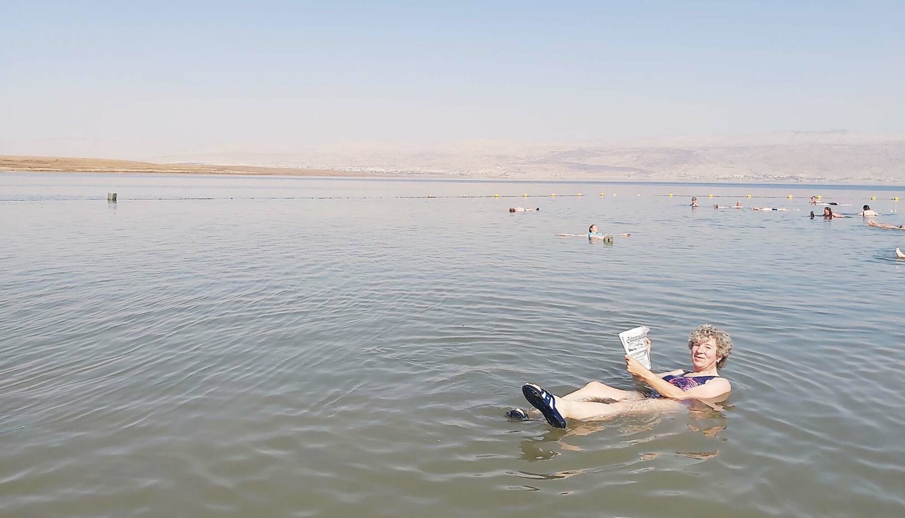 Das Toten Meer gilt als tiefster Punkt der Erde. Es liegt 430 Meter unter dem Meeresspiegel. Gerne nutzte die Gruppe die Gelegenheit zu einem Bad. Durch den hohen Salzgehalt des Meeres treibt man auf dem Wasser. Bei einer Außentemperatur von 44 Grad Celsius Entspannung pur. Bei der Autofahrt nach Jericho informierte Reiseleiter Sharon die Gruppe über die zunehmende Problematik des sinkenden Wasserstandes am Toten Meer (das Meer verliert jedes Jahr einen Meter Wasserstand wegen fehlender Niederschläge) und die daraus entstehenden geologischen Folgen (großflächige sinkende Löcher). Bauvorhaben am Toten Meer können nicht mehr realisiert werden.