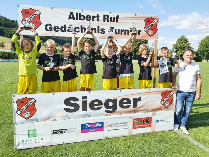 Bei herrlichem Sonnenschein und perfekten Fußballbedingungen besiegelten die Nachwuchskicker zuerst in einer Sechsergruppe den Gruppensieg. Anschließend setzten sich die Jungtalente in einem spannenden »Endspiel« nach einem ausgeglichenen Beginn mit mannschaftlicher Geschlossenheit klar gegen die befreundeten Spieler aus Wolfach, Gruppensieger der Parallelgruppe, durch und konnten unter großem Jubel und noch größerer Freude stolz die Pokale entgegennehmen.