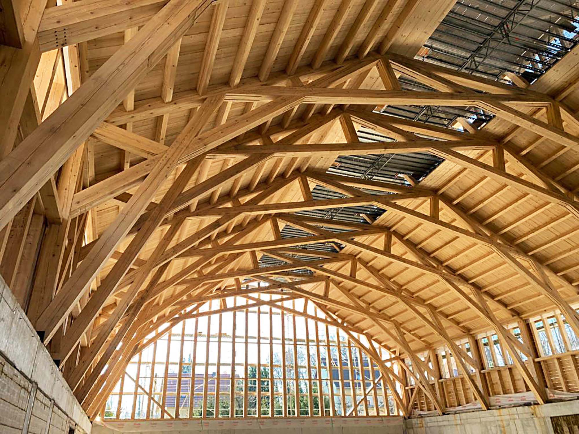 Das Tannenholz für eine neue Sporthalle mit 23 Meter Spannweite der Zinzendorfschule in Herrnhut stammt ebenfalls allesamt aus dem Schwarzwald. Für diesen Großauftrag hat das Holzwerk Burger rund 1200 Festmeter Rundholz verarbeitet. Foto: Hanspeter Schwendemann