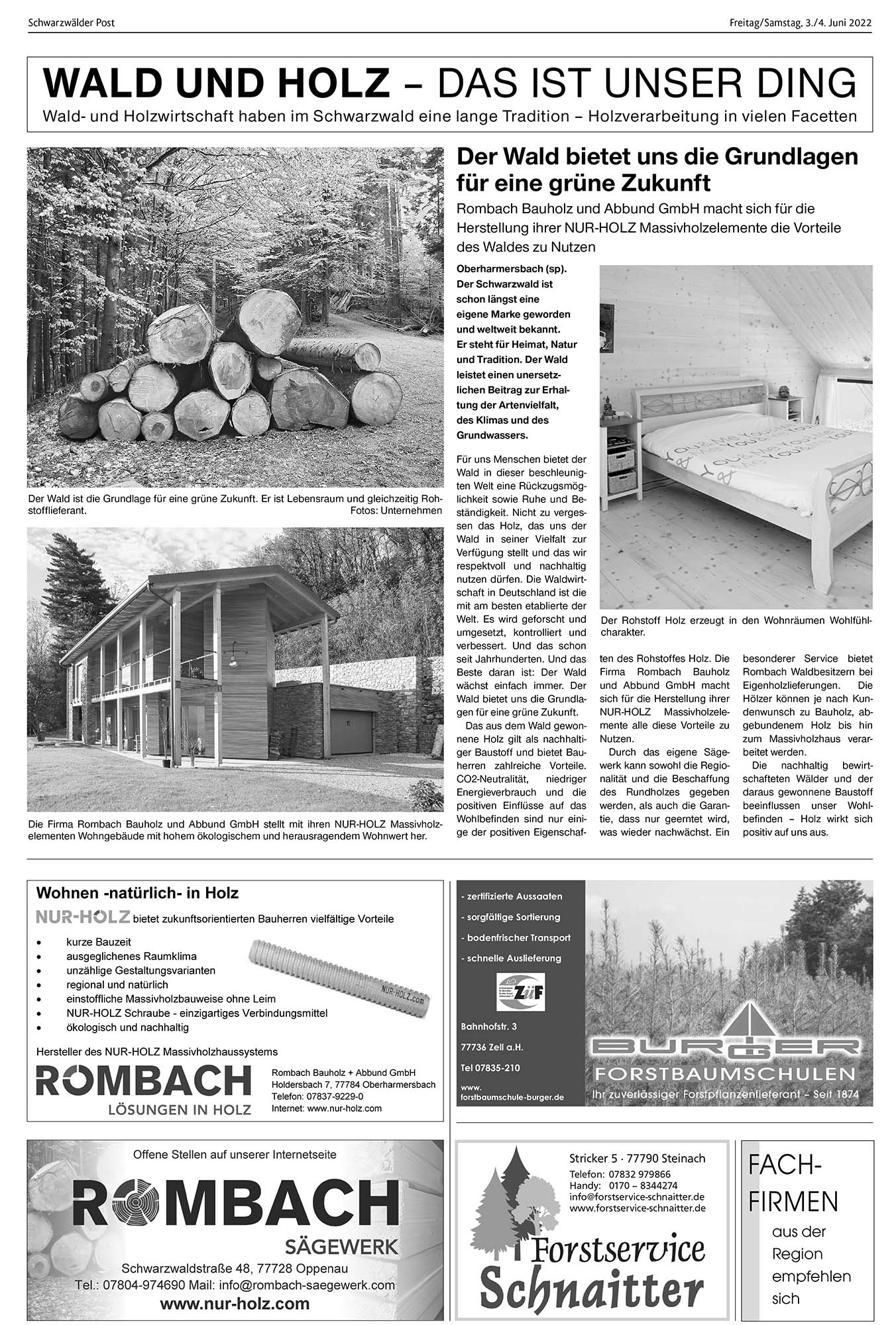 Wald- und Holzwirtschaft haben im Schwarzwald eine lange Tradition – Holzverarbeitung in vielen Facetten