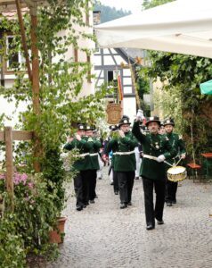 Der Zeller Spielmannszug begleitet am Samstag die Gäste aus Unterharmersbach zum Aufmarsch auf den Kanzleiplatz.