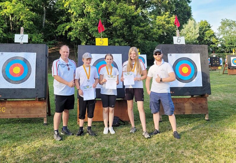 Nach drei Jahren fand beim BSC Lahr endlich wieder eine Landesmeisterschaft Bogen im Freien statt. Die 2020 geplante Landesmeisterschaft fiel coronabedingt aus, 2021 fiel sie wortwörtlich ins Wasser, als in Whyl am Kaiserstuhl der Bogenplatz unter Wasser stand.