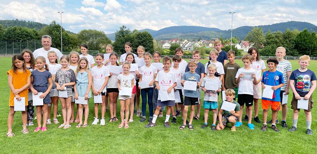 Am ersten Ferientag der Sommer ferien fand die Ehrung der Schüler für das Deutsche Sportabzeichen des Jahres 2021 statt. Man traf sich im Stadion Sportpark in Zell, wo die Ehrung von Sportabzeichen-Organi sator Willi Lehmann vom Turnverein Unterharmersbach durchgeführt wurde.