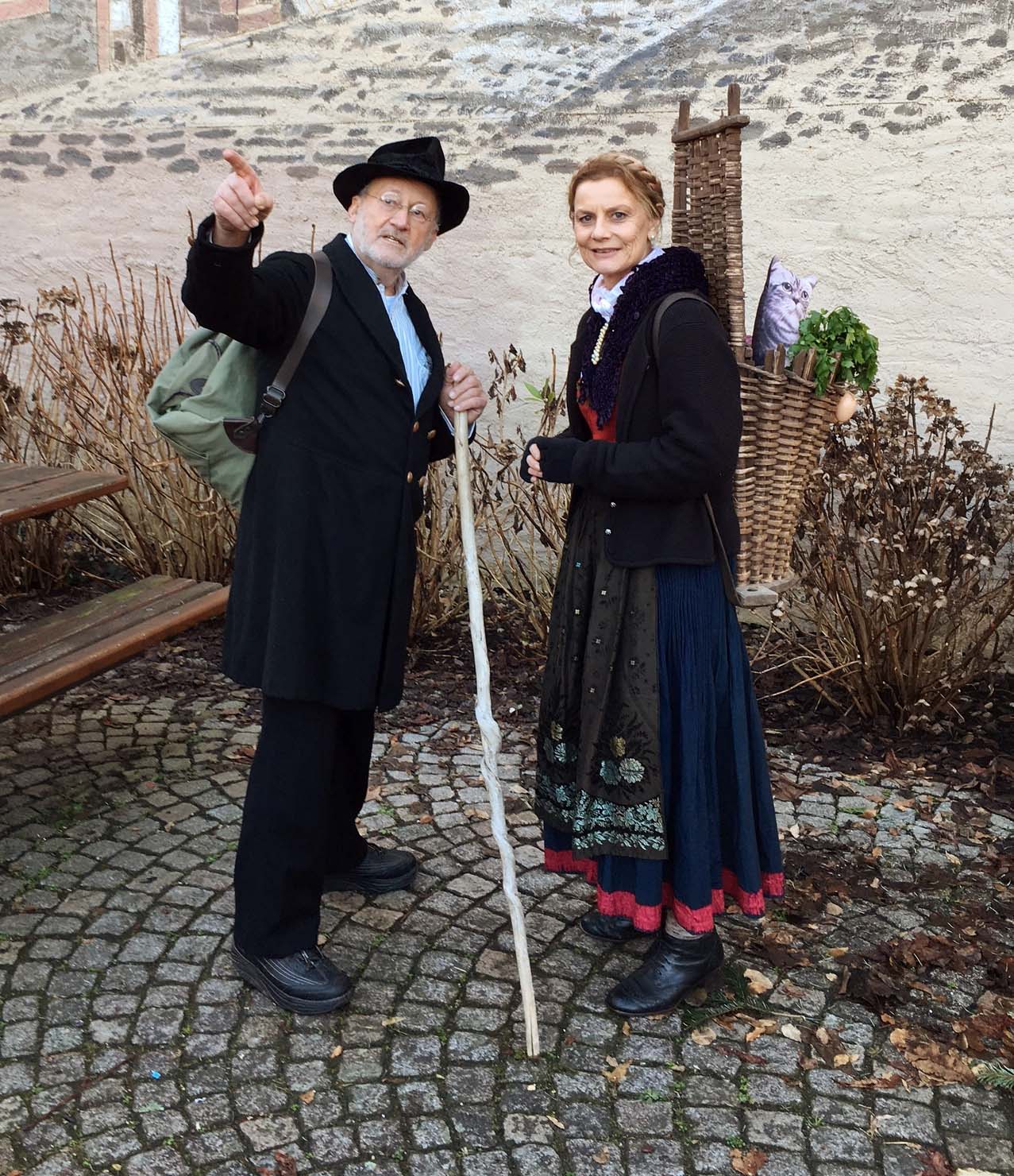 Die Sprücheklopfer das sind Husierer Zimpfer, alias Albert Schwarz, und Marktwiib Kätterle, auch bekannt als Brigitte Sum-Herrmann. Zusammen führt das Duo kurzweilig, unterhaltsam und Sprüche klopfend durchs Zeller Städtle. Denn die beiden wissen, wo in Zell das Geld auf den Kopf gehauen wird, der Bartel den Most holt, was Schlitzohren auf dem Kerbholz haben und vieles mehr.