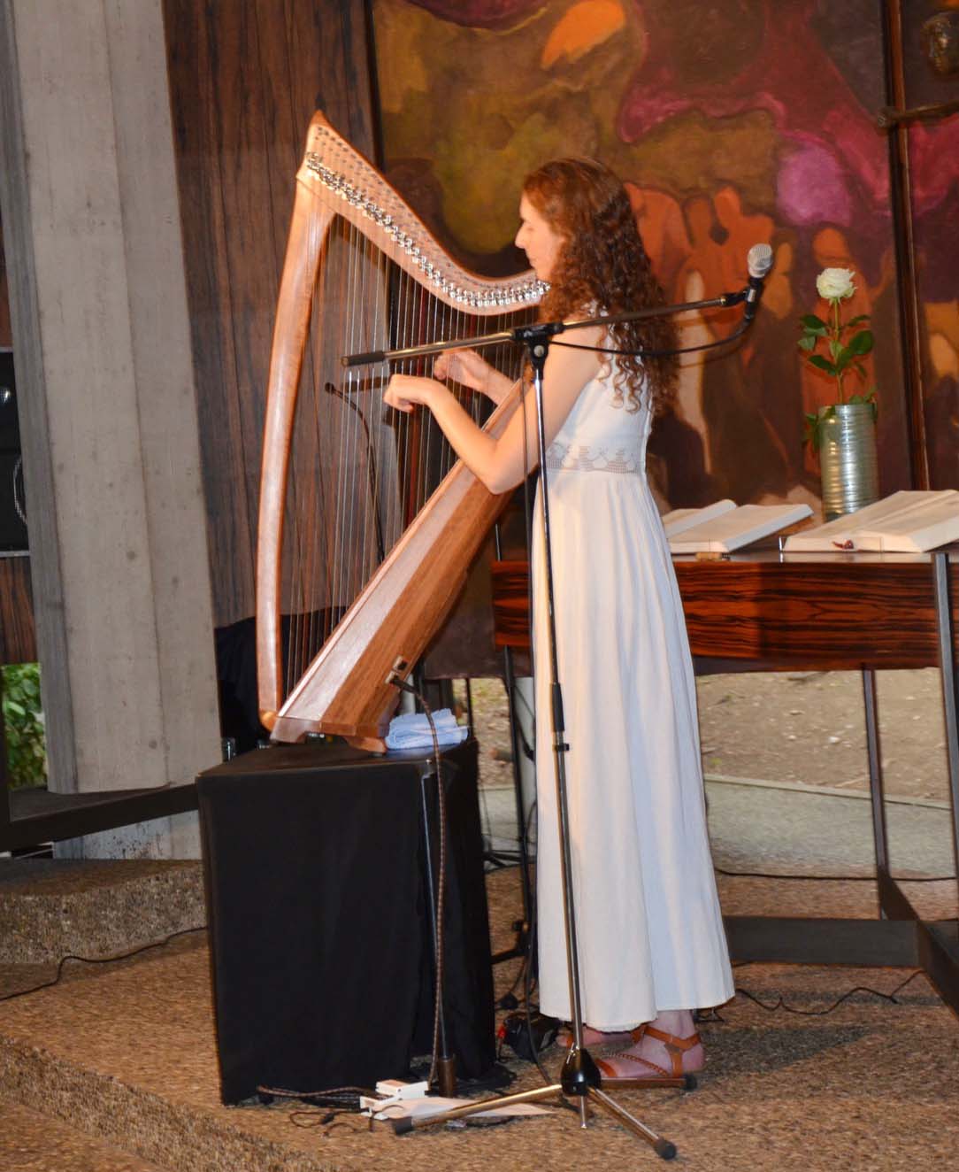 Die Harfenistin Nadia Birkenstock in der Evangelischen Kirche