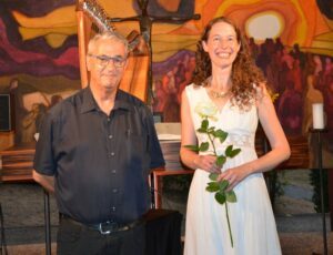 Die Künstlerin durfte den großen Applaus des Publikums und die weiße »Sommermusik«-Rose und Dankesworte vom Kirchenältesten Joachim Groß entgegennehmen.