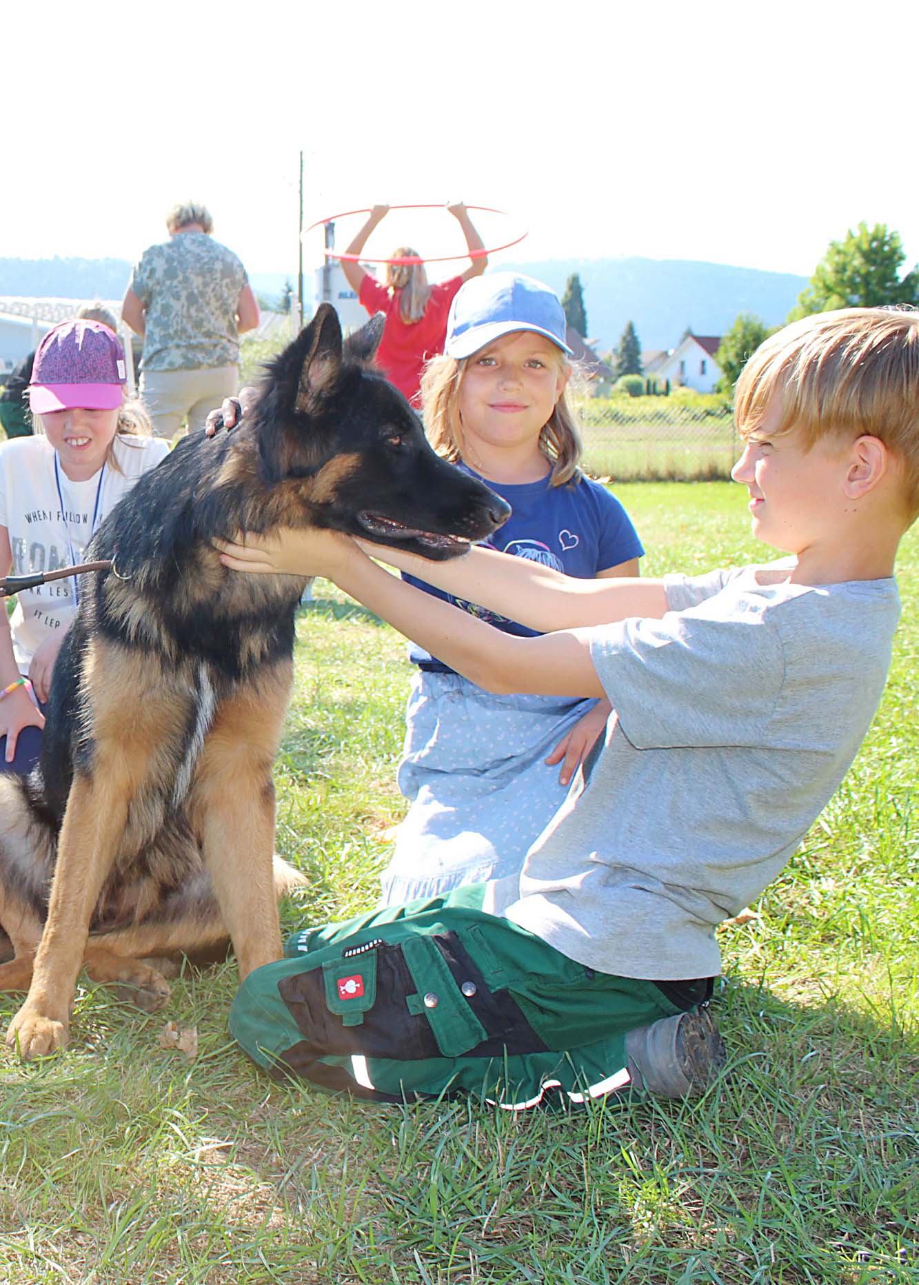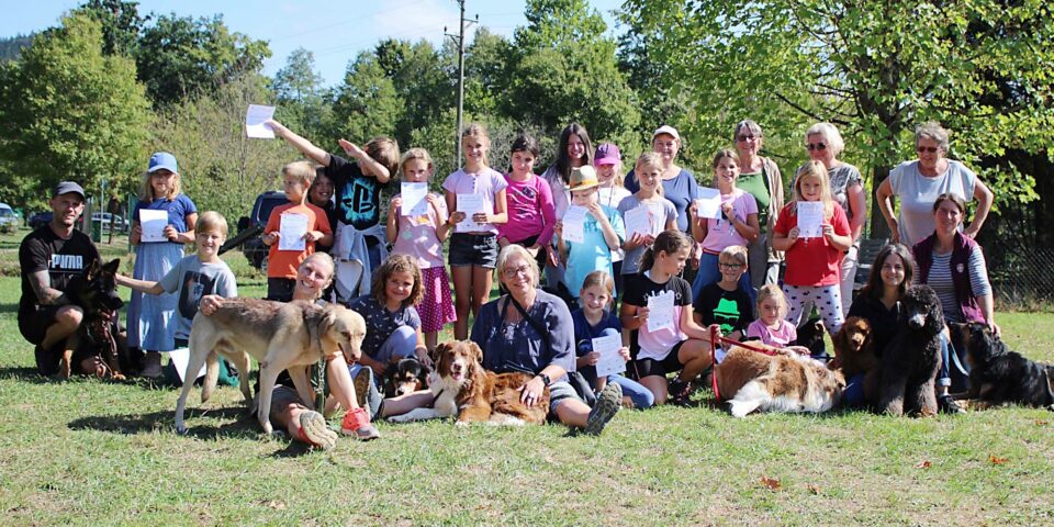 Dieses Mal im Rahmen der Zeller Kinderferienbetreuung unter der Leitung von Melanie Herold, erreichten die Kinder bei schönem Wetter per Pedes den Hundeplatz. Dort übernahm dann Marianne Landler, Schriftführerin und Übungsleiterin des Vereins, das Kommando und führte die Kinder unterstützt von weiteren Vereinsmitgliedern und deren Hunde durch ein buntes und abwechslungsreiches Programm.