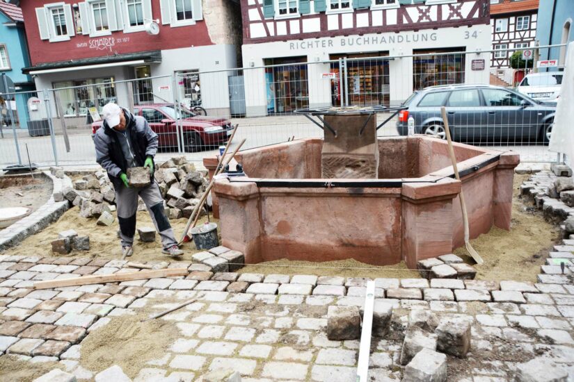 Der Stadtbrunnen war am Montag Thema im Gemeinderat. Ein Teil des Brunnens »versinkt« in angrenzenden Pflasterbelag.