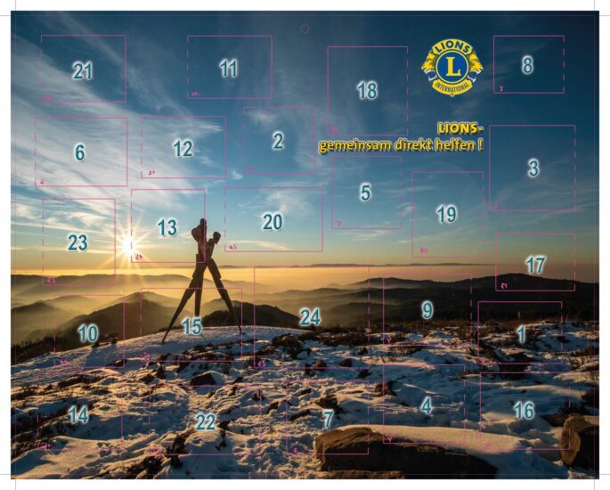 Der Adventskalender ist das älteste Projekt des Lions Club Zell. Bereits vor 18 Jahren begann der Club mit dieser Activity. Lions-Mitglieder suchen seither Spender, die Preise zur Verfügung stellen. Der Kalender wird stets mit einem schönen Foto geschmückt, in diesem Jahr ist das Motiv das Lothar-Denkmal in der Nähe des Moos turms, aufgenommen von Gerold Walter.