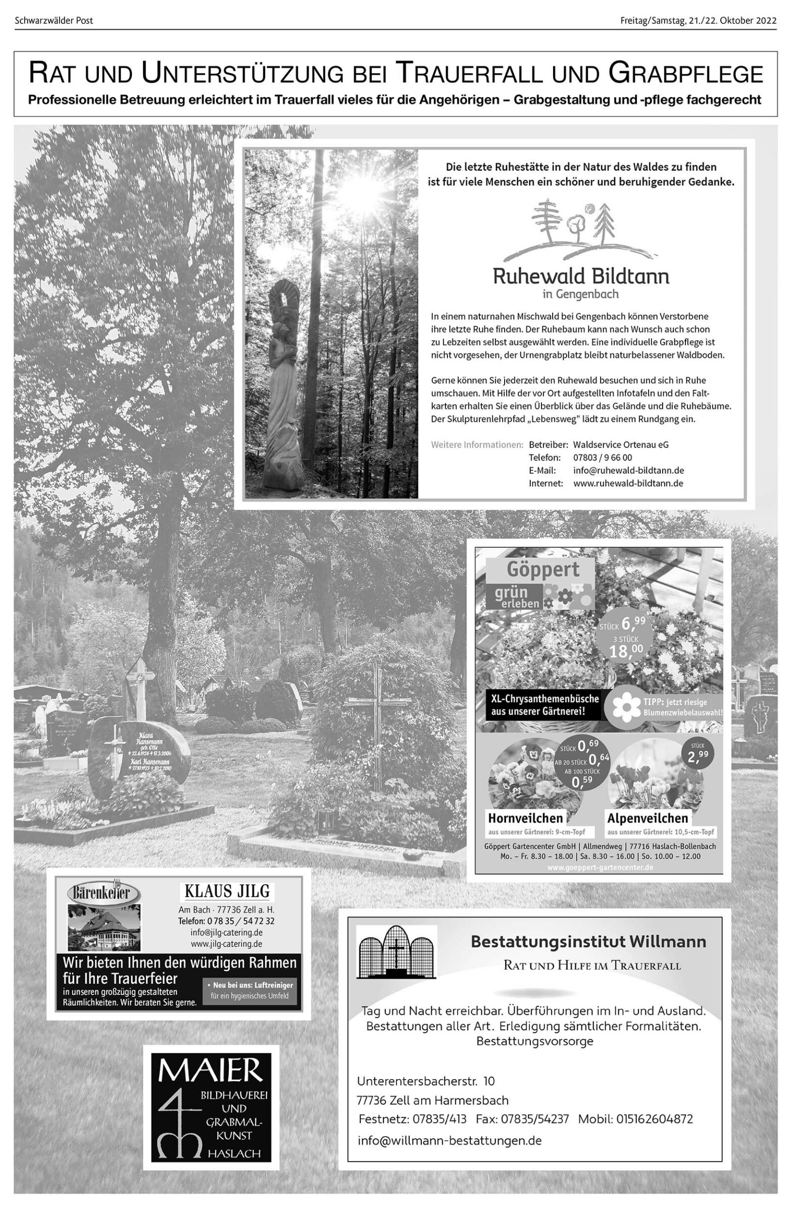 Zell am Harmersbach | 21.10.2022 Rat und Unterstützung bei Trauerfall und GrabpflegeProfessionelle Betreuung erleichtert im Trauerfall vieles für die Angehörigen – Grabgestaltung und -pflege fachgerecht Foto: Foto: Hanspeter Schwendemann von Schwarzwälder Post Foto: Unternehmen Foto: UnternehmenDas könnte Sie auch interessieren:Foto: Gerhard NeumaierEvangelische Kirchengemeinde hat…Verbrennen pflanzlicher Abfälle ist mit…Foto: Unternehmen Ein starkes Zeichen für Solidarität