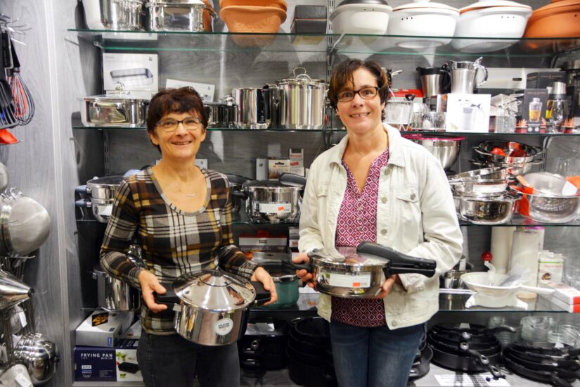 Elke Kneissler (links) und Elke Pfaff empfehlen für das Kochen den Einsatz von Schnellkochtöpfen. Damit lassen sich viel Zeit und Energie sparen. Foto: Hanspeter Schwendemann