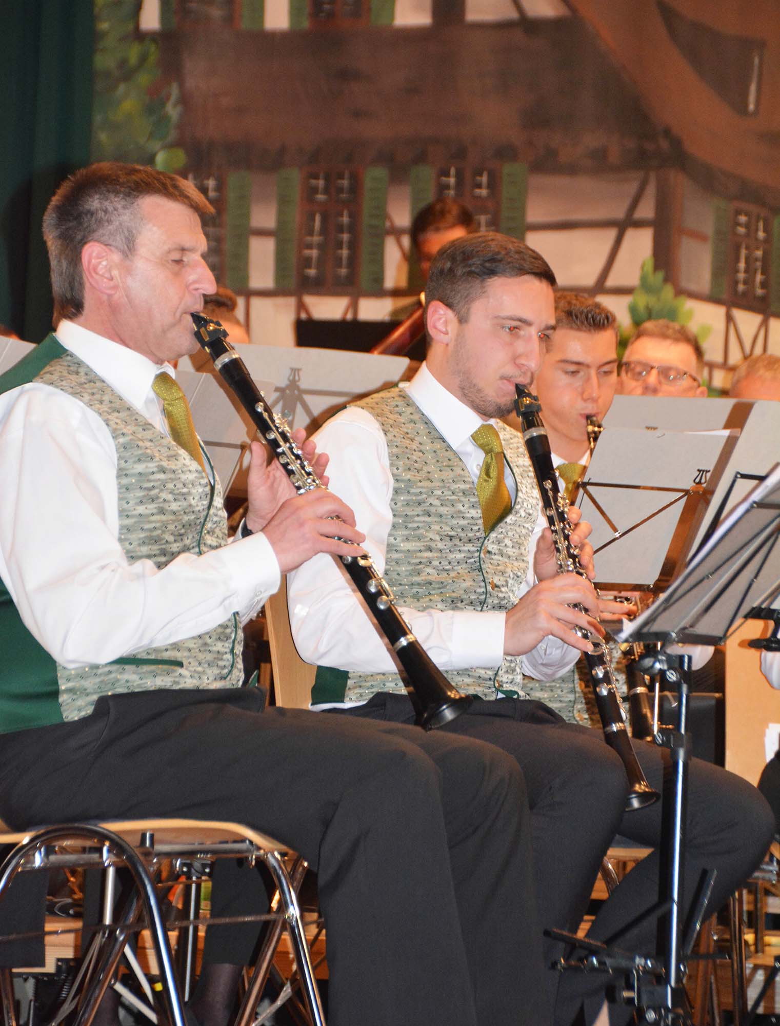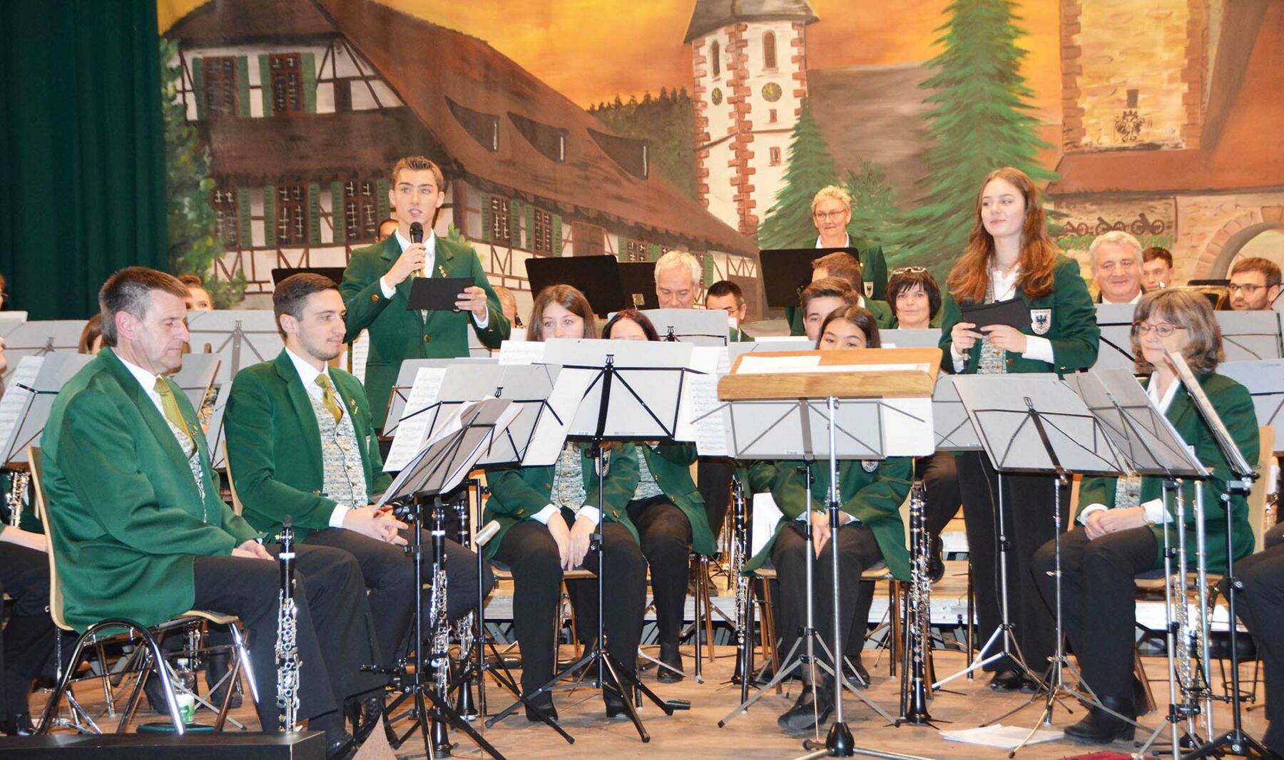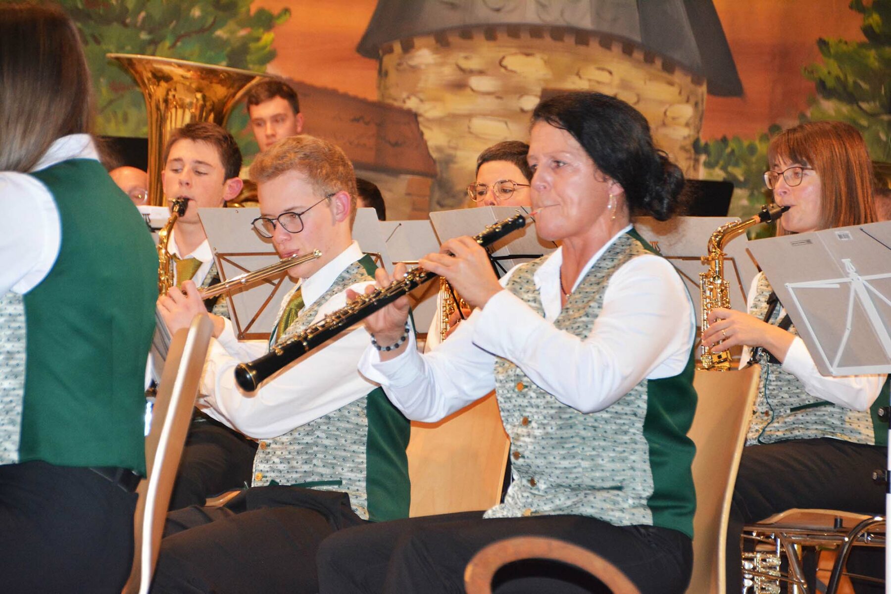 Der Vorstand bedankte sich besonders bei den vielen Unterstützern des Vereins im Vorfeld des Konzerts und den Helfern bei der Bewirtung. Unter großem Applaus erhielten Dirigent Stefan Polap und die Moderatoren Amelie Ette und Aron Roth jeweils ein Präsent. Glückwünsche erhielt Aron Roth darüber hinaus für das goldene Leistungsabzeichen. Man habe nun einen »Goldjungen« in den Orchesterreihen, schmunzelte Sebastian Grillich.