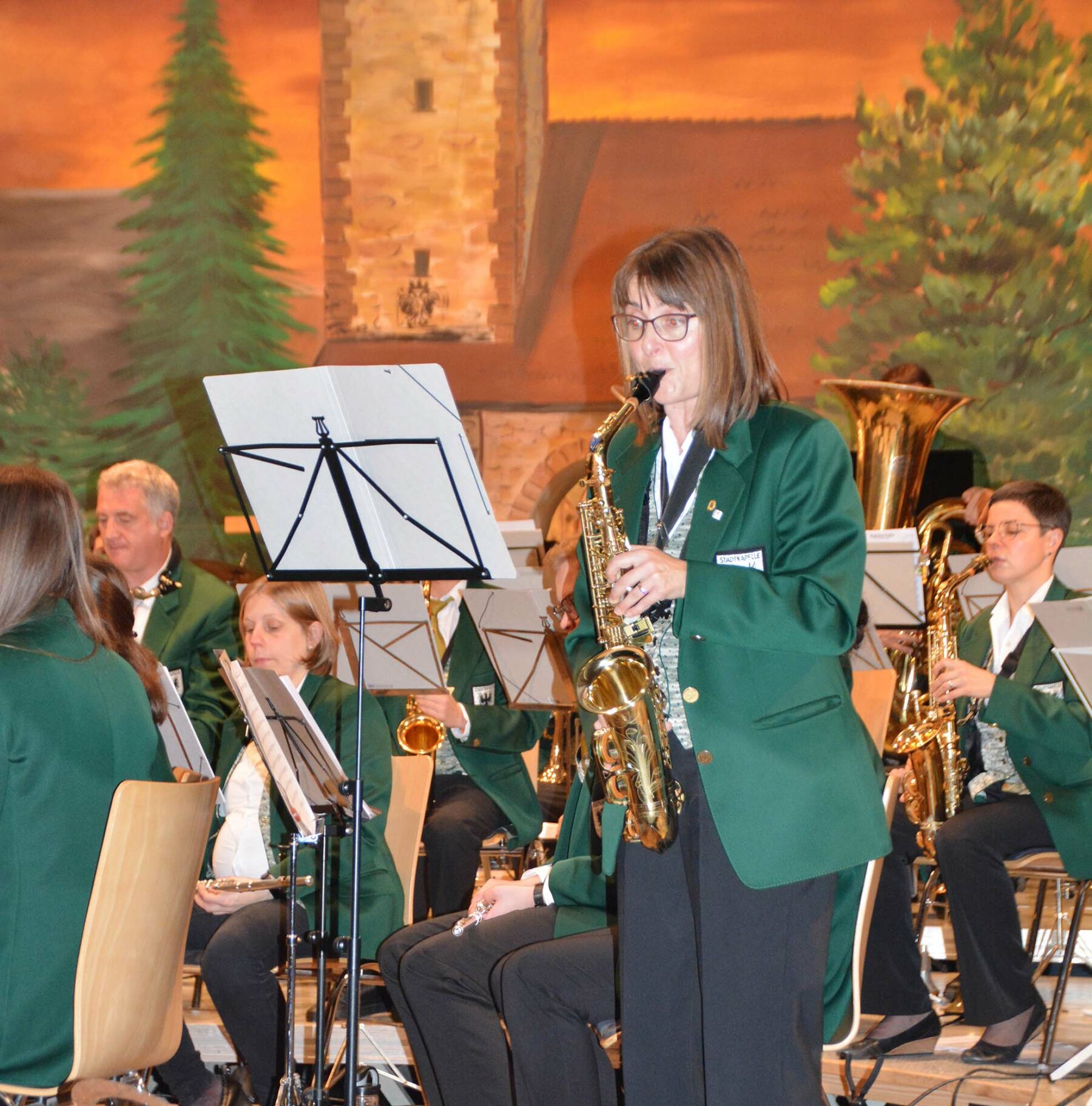 Voll des Lobes war der Primus inter pares auch für das 40-jährige Engagement von Petra Kühnpast. Als Musikerin spielte sie zunächst die Klarinette und wechselte 2005 zum Tenorsaxofon. Knapp 20 Jahre gehörte sie dem Vorstand an, von 1998 bis 2009 als 1. Vorsitzende.