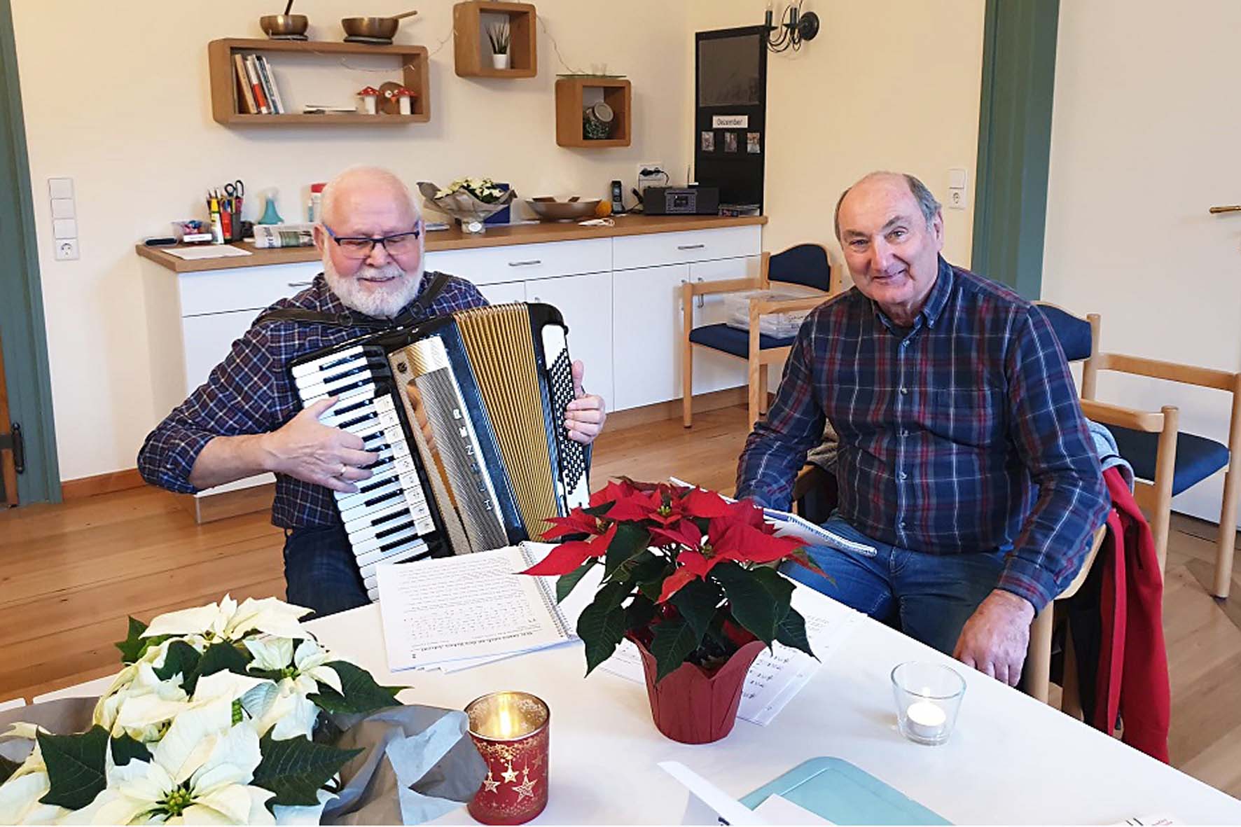 Foto: Martina BoschertAgnes Serrer erfreute mit ihrem Zitherspiel.Foto: Martina BoschertDie Fahrer Reinhard Gerber am Akkordeon und Ulrich Bleier spielten und sangen gemeinsam mit den Gästen weihnachtliche Lieder.Foto: Martina BoschertDie Fahrer Alfred Armbruster am Flügelhorn und Karl Gallus erfreuten die Zuhörer mit adventlichen Klängen.Foto: Martina BoschertUnd zu guter Letzt erzählte Knecht Ruprecht, alias Kurt Ficht, von seiner langjährigen Leidenschaft als Begleiter vom Nikolaus Bernhard Lorenz. Über 27 Jahre führte er mit viel Liebe dieses Amt aus. So manche Anekdote wurde zum Besten gegeben. Wer viel erlebt hat, kann viel erzählen. Das sorgte für fröhliche Unterhaltung und manchen Lacher.Foto: Martina BoschertMagdalena Laifer erfreute mit ihrem zarten Harfenspiel.