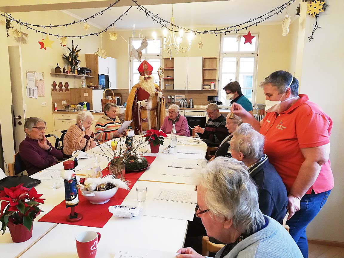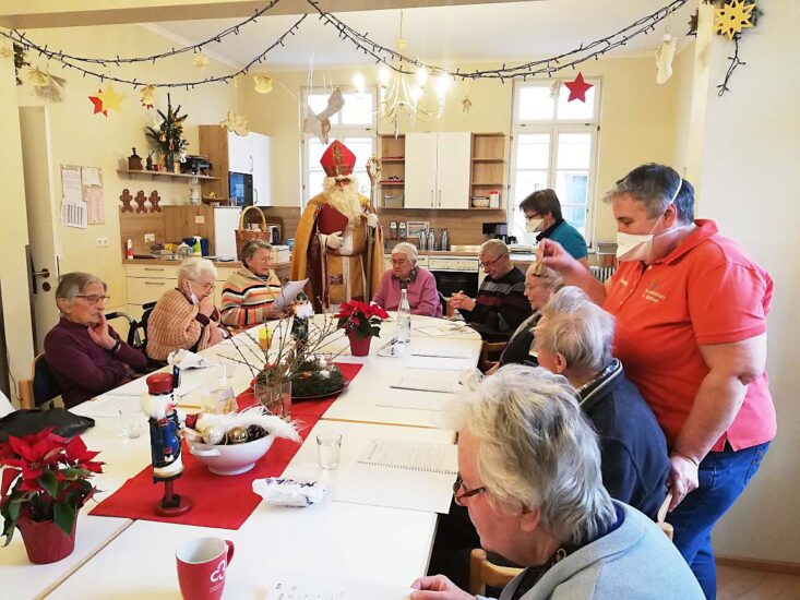 Ein Höhepunkt war der Besuch von Bischof Nikolaus. Die Augen der Gäste strahlten, es wurden kindliche Erinnerungen geweckt. Zum Abschluss verteilte er an jeden Adventsgebäck. Foto: Martina Boschert