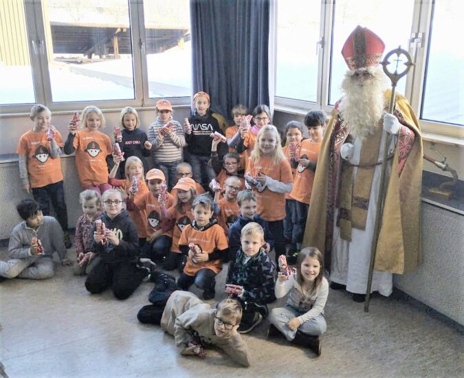 Der Höhepunkt bei der Weihnachtsfeier war aber der Besuch des Nikolauses in seinem prächtigen Gewand, der vieles vom vergangenen Jahr zu erzählen wusste und durchweg alle Kinder lobte. Nachdem dem Nikolaus gemeinsam Lieder vorgetragen wurden, gab es für alle noch ein tolles Geschenk zu Weihnachten.