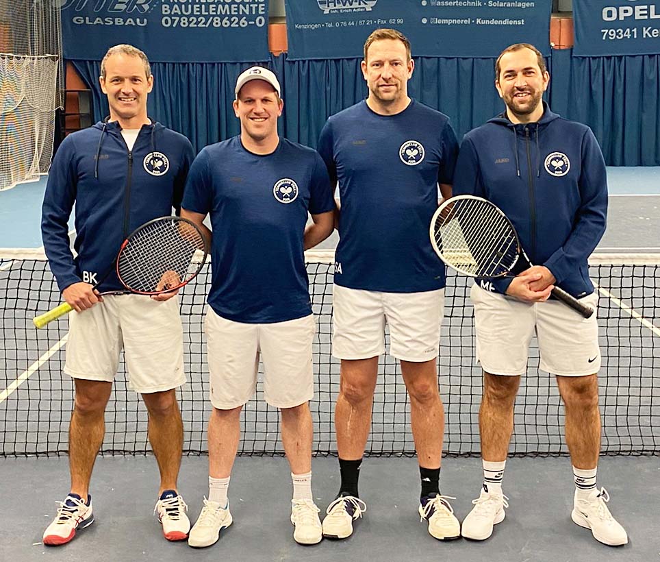 Am letzten Sonntag reiste das Team um Mannschaftsführer Stefan Arbogast in das Kenzinger Tenniscenter zum Spiel gegen den TC Malterdingen. Wohl beflügelt durch die mittlerweile eingetroffene neue Sportkleidung gelang ein überzeugender 5:1 Sieg, obwohl sich die Zeller Spieler zuerst an den ungewohnten stumpfen Bodenbelag anpassen mussten. Auch Neuling Marc Fuchs feierte in seinem ersten Verbandsspiel für den TC Zell im Einzel und Doppel einen erfolgreichen Einstand. Mit diesem zweiten Sieg grüßt das Team von der Tabellenspitze, die es am 14. Januar im Heimspiel gegen den TC Kappel-Grafenhausen zu verteidigen gilt.