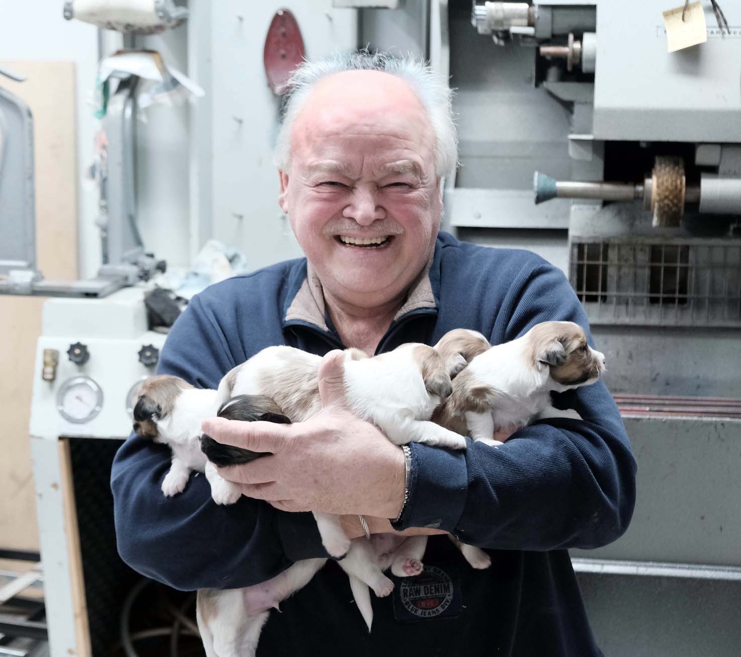 „Jacky“ hat Nachwuchs. Gleich sieben Welpen brachte die Misch lingshündin an Silvester auf die Welt. Nicht irgendwo, sondern in Josef „Jopi“ Mulders Ladengeschäft in Haslach. Seitdem ist er fast täglich mit Sack und Pack unterwegs. Jopi ist aktuell nicht nur gelernter Schreiner, Schlosser, Schuhmachermeister und Schreiner, sondern auch Neunfach-Hundesitter. Was für eine Aufgabe!