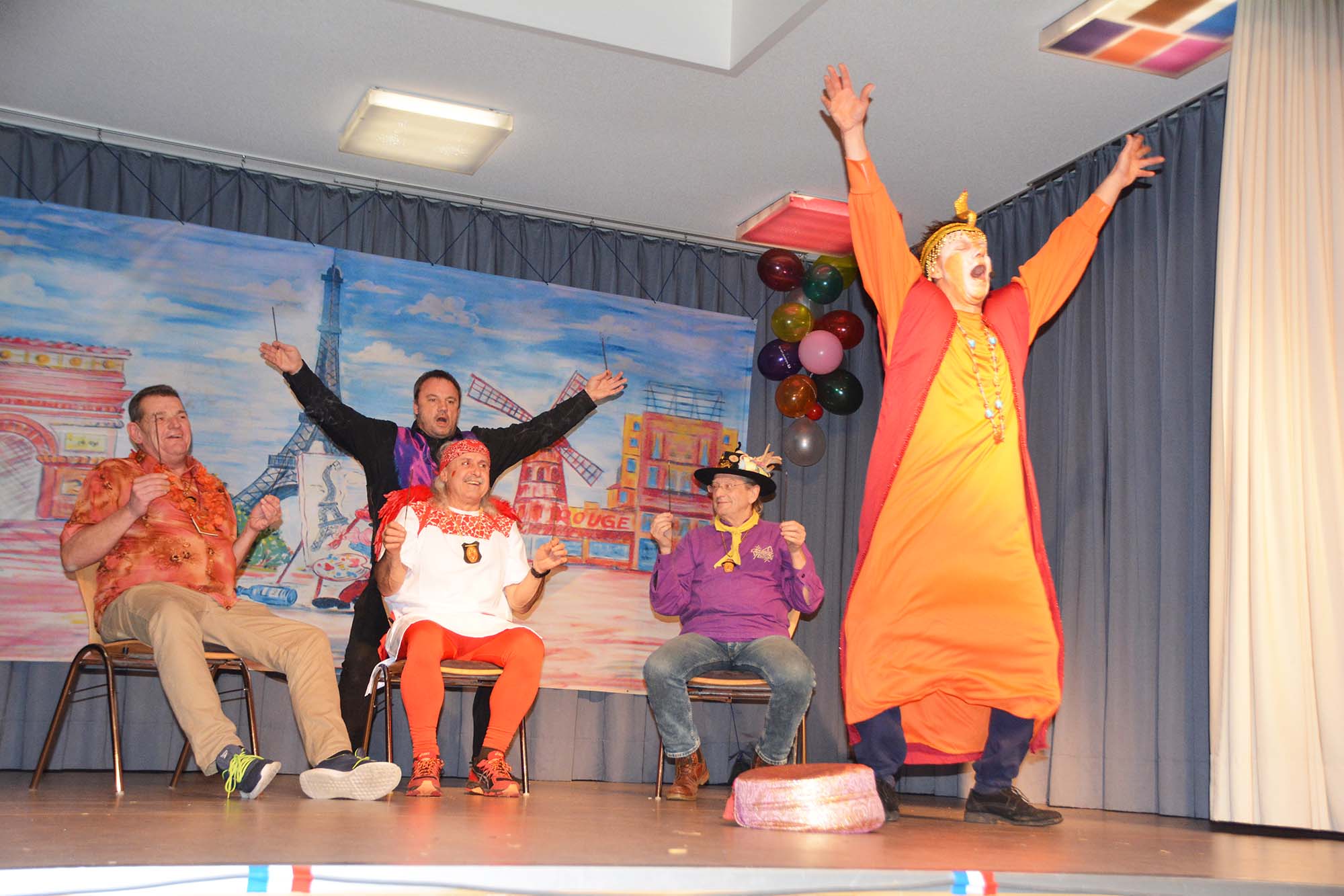 Im ersten Kapitel des Fasendbuchs präsentierten die singenden Zwerge einen mitreißenden Hit-Mix und brachten damit die Narren in Schwung und gleichzeitig ins Staunen. Raffiniert hatten sie sich hinter dem weißen Vorhang so »aufgestellt«, dass aus erwachsenen Personen echte Zwerge wurden.