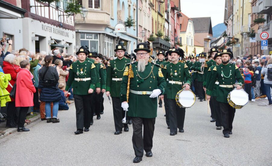 Nach zweijähriger Corona-Unterbrechung erlebte die Stadt Zell am Silvestertag wieder den traditionellen Silvesteraufmarsch. Rund 2.000 Besucher bildeten bei frühlingshaften Temperaturen eine Rekordkulisse für die Freiwillige Bürgerwehr und die Stadtkapelle Zell. Bürgermeister Günter Pfundstein nannte es ein »kleines Glück«, dass das Ritual, dessen Wurzeln bis ins Mittelalter zurückreichen, nun wieder stattfinden konnte.