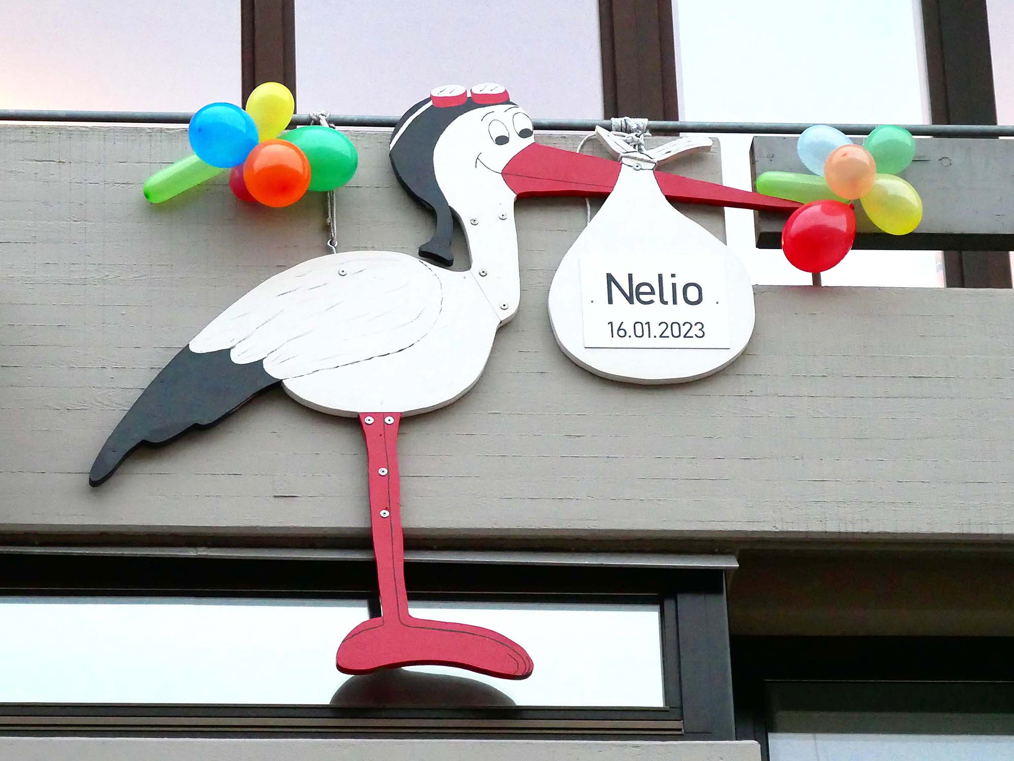 Mitten im Städtle durfte nach langer Zeit der Städtlestorch zur Geburt eines kleinen Homberles landen.