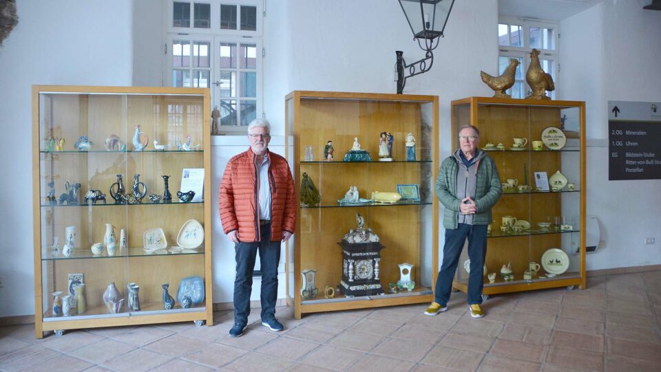 Ganz wichtig erscheint den Museumsfreunden die Präsentation der dritten Vitrine, die sich dort dem Thema »Hahn und Henne« widmet. Das von Karl Schöner entworfene Erfolgsdekor gibt es seit 125 Jahren – ein kleines Jubiläum.