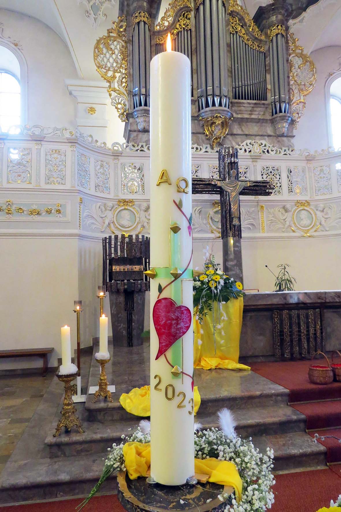 Die Feier der Osternacht am frühen Ostersonntagmorgen um 6 Uhr in der Pfarrkirche erfreut sich großer Beliebtheit. Eine große Gemeinde versammelte sich am Osterfeuer auf dem Kirchplatz. Die Gruppe Horizont sang in der Kirche die modernen Lieder.