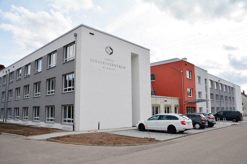 Seit 55 Jahren können betagte und pflegebedürftige Menschen im Caritas-Seniorenzentrum „St. Gallus“ gut versorgt ihren Lebensabend verbringen. Die segensreiche Einrichtung genießt einen sehr guten Ruf in weiten Kreisen der Bevölkerung. Mit dem Neubau direkt neben dem Bestandsgebäude wurden nun die Weichen für die Zukunft gestellt. In sechs Wohngruppen können insgesamt 90 Personen in Einzelappartements aufgenommen werden. Daneben eröffnen die Gemeinschaftsbereiche viel Raum für soziale Kontakte.
