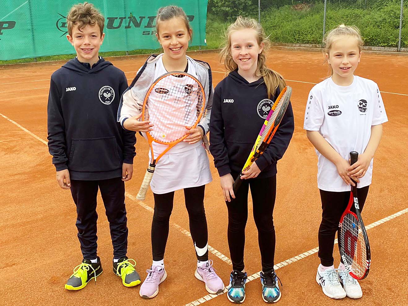 Die U10 mit Sieg in die Medenrunde gestartet. Von links: Salomon Künstle, Lina Hainz, Emily Fritsch, Lotta Eble. Foto: Verein