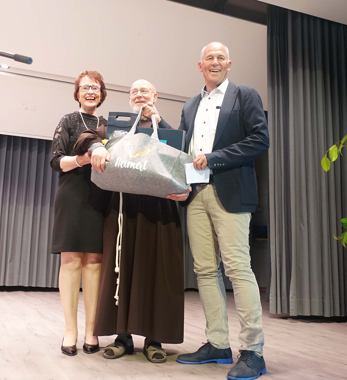 Für die Brüder, die Zell verlassen und in anderen Klöstern Aufgaben übernehmen, überreichten Brigitte Stunder und Ludwig Schütze „Marschverpflegung“ aus dem Schwarzwald. Dekan Mathias Bürkle aus Offenburg dankte den Kapuzinern für ihre Mitarbeit in den verschiedenen Bereichen, die immer eine große Entlastung für das Dekanat gewesen sei. Ob in der Seelsorge oder als Krankenhausseelsorger seien die Kapuziner immer hilfsbereit gewesen und hätten zusätzliche Dienste übernommen. Er wies auch auf den Kapuziner-Bericht von Hans-Peter Wagner hin, in dem die Kapuziner auf ihre Art gewürdigt worden sind. In diesen Episoden zeige sich auf besondere Weise, wie Volksfrömmigkeit zugleich die Verbundenheit mit der Kirche bilde.
