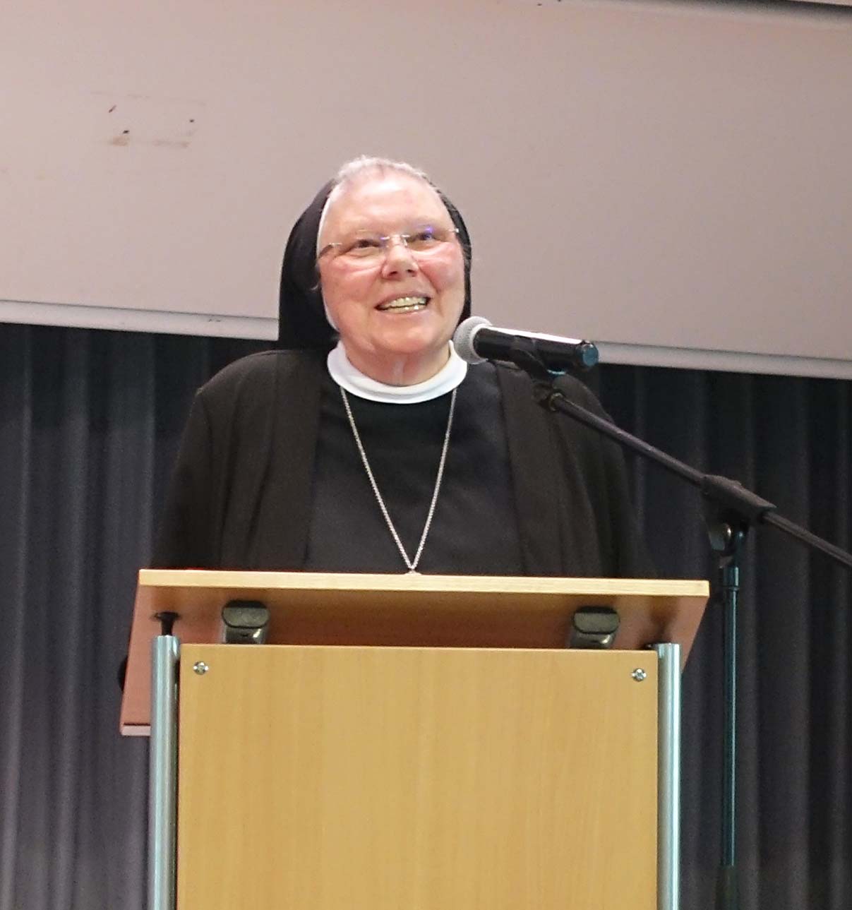 Zum Schluss erzählte Bruder Helmut mit einem Schmunzeln eine kleine Anekdote über den unvergessenen Pater Ferdinand: Pater Ferdinand drohte nach einem Weinfest mit Weißherbst in eine Polizeikontrolle zu geraten. Kurz vor dem Kontrollpunkt hielt Pater Ferdinand an und eilte zu den Polizisten und fragte, was denn Schlimmes passiert sei, ob ein Priester benötigt werde. Der Polizist antwortete: „Es ist nur Verkehrskontrolle. Danke Pater, Sie können beruhigt weiterfahren.“