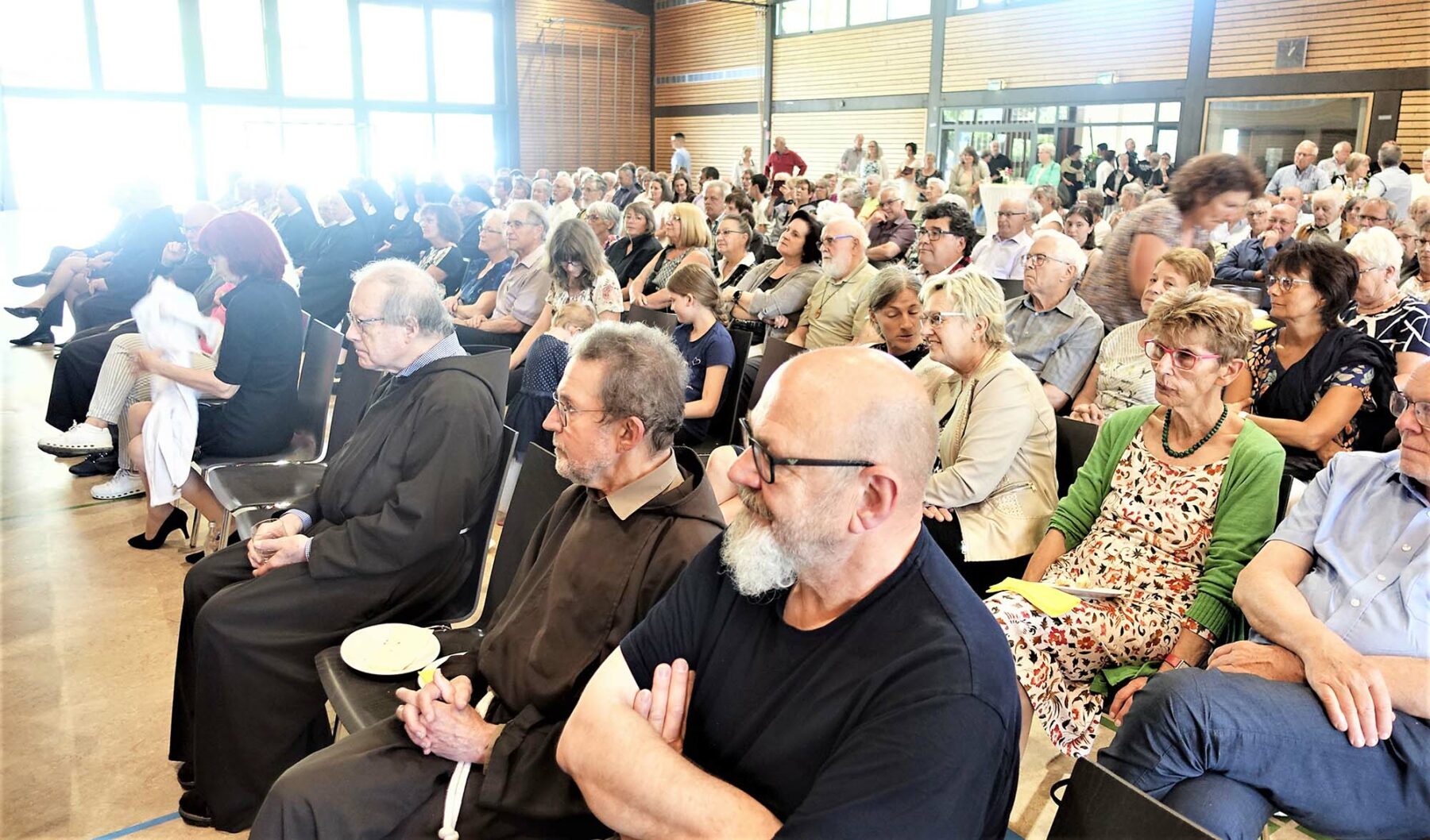 Die Predigt hielt Bruder Provinzial Helmut. Er erzählte von dem Haus in Mainz, in dem er mit seinen Eltern wohnte. Davon, was er fühlte, wenn er heimkam von den Studientagen und wenn er ging. Heimat sei nie ein Ort allein. Er sei mit Menschen und Erfahrungen verknüpft. Die Klosterauflösungen seien für ihn als Provinzial seine Aufgabe und sein Thema, manchmal verknüpft mit endlosen Diskussionen. Er sei für manche der böse, kaltherzige Bürokrat, der die »Heimat« bedrohe.