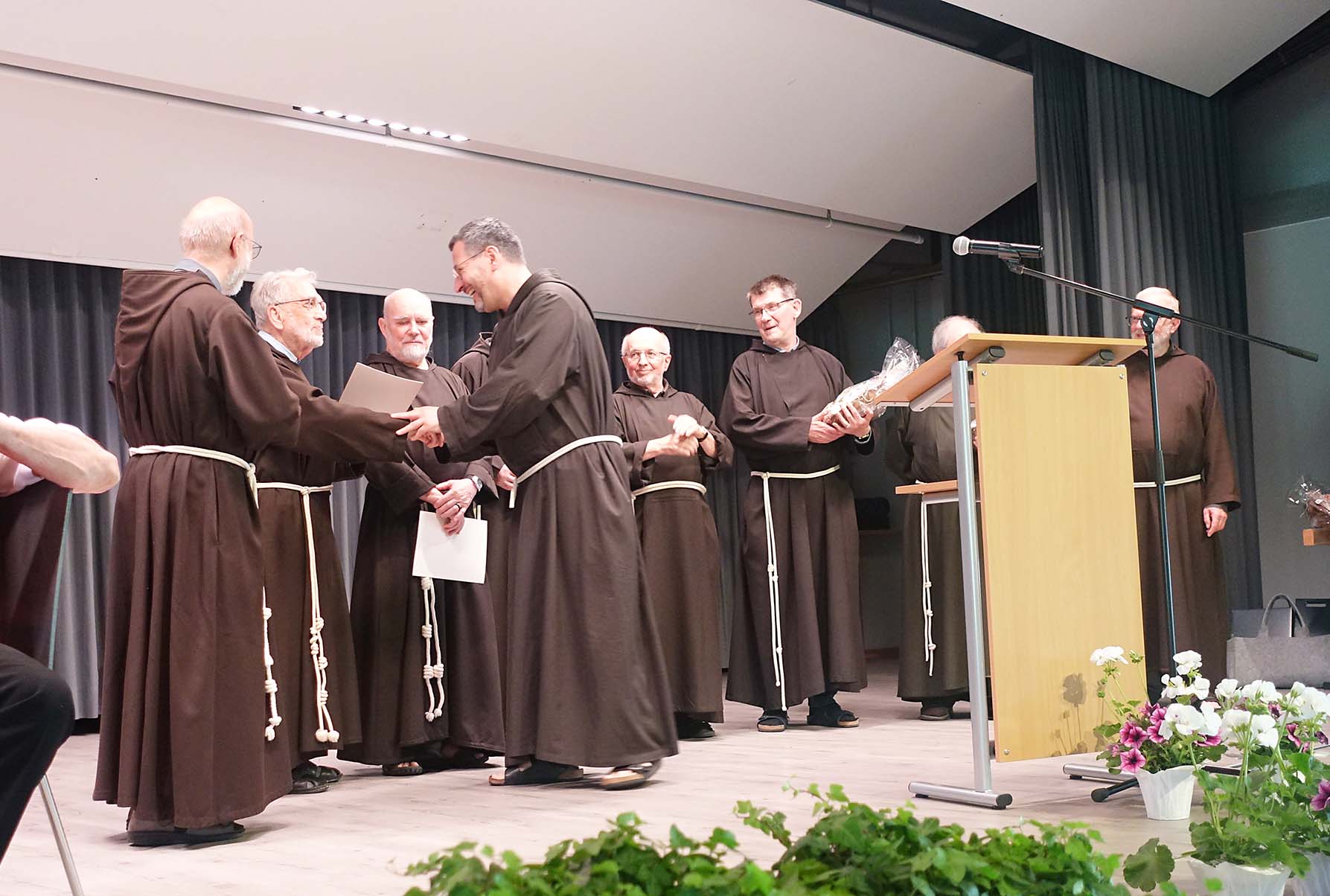 Besonders herzlich dankte Bruder Helmut dem 86-jährigen Senior-Pater Hadrian Hess. Er war über 40 Jahre in der Kapuzinermission in Nias (Indonesien) als Missionar tätig. Nach seiner Rückkehr vor neun Jahren wünschte er sich Zell als Alterssitz. Die Bitte wurde vom Provinzial gerne erfüllt. Pater Hadrian hat in Zell mehrere Bücher über die Wallfahrtskirche Maria zu den Ketten geschrieben und zahlreiche Führungen für Gruppen durchgeführt. Er wird zu den Gengenbacher Schwestern ins Haus Bethanien versetzt und übernimmt dort seelsorgerische Aufgaben.