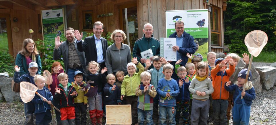 Am Mittwoch war ein großer Tag für die Waldkinder in Zell a. H. Als zweiter Kindergarten im Ortenaukreis wurde er vom Naturpark Schwarzwald Mitte/Nord zum Naturpark-Kindergarten zertifiziert. Zur Auszeichnungsfeier kam mit Staatssekretär Volker Schebesta, dem Ersten Landesbeamten Dr. Nikolas Stoermer vom Ortenaukreis und Naturpark-Geschäftsführer Karl-Heinz Dunker hoher Besuch in den Waldkindergarten.