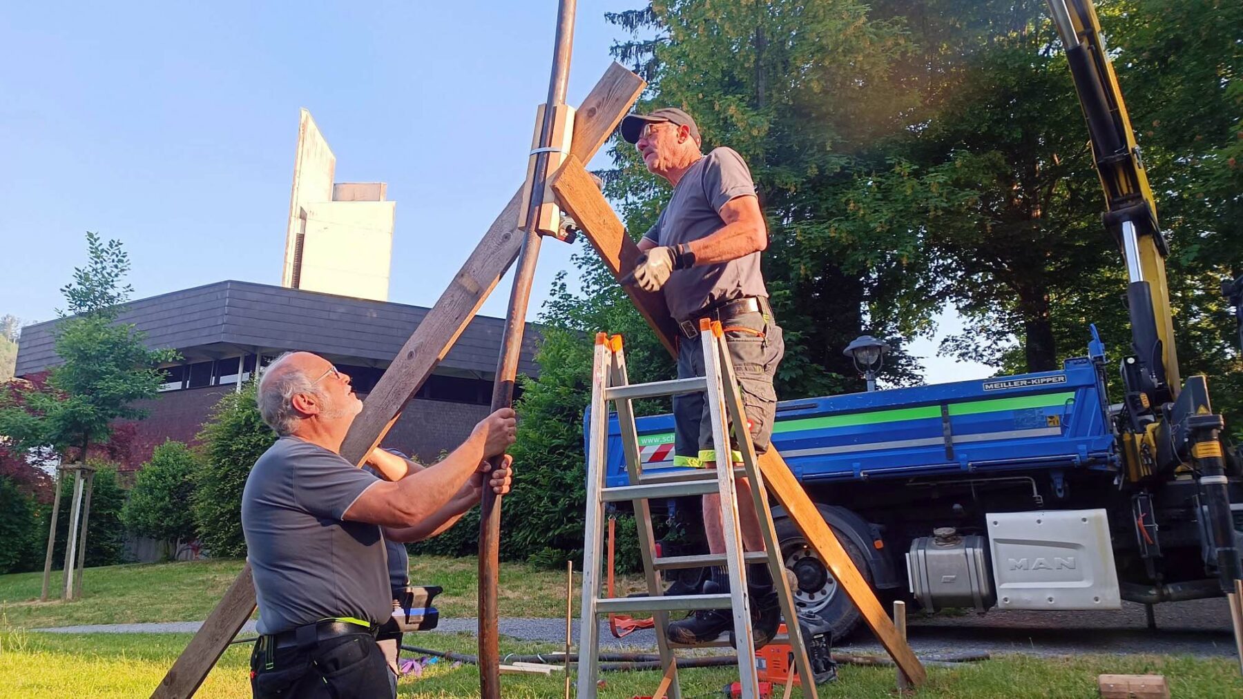 Knapp zehn Jahre nach ihrer Entstehung wird die Skulptur „Erdhalme“ saniert und wächst an einem neuen Standort in den Himmel. Wer mag, kann nächste Woche live dabei sein und mit den Künstlern ins Gespräch kommen.