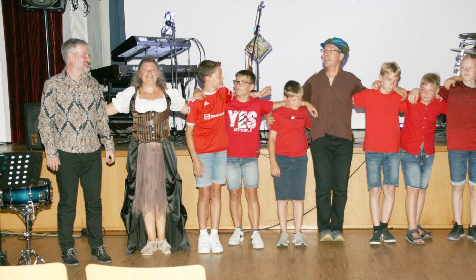 Bei mehreren Titeln konnten die Jugendlichen der Halbemeter-Band an den Schlagzeuginstrumenten ihre Talente einbringen: Finn Armbruster, Henrik Boschert, Luis Fritsch, Dario Giesler, Joschua Gutmann, Adrian Lehmann, Felix Lehmann, Elias Wussler und Luca Wussler. Dass die Profis ihnen dazu die Gelegenheit gaben, verdient besondere Anerkennung. Das Zusammenwirken hat wunderbar geklappt. Im Übrigen waren auch die Zuschauer immer wieder eingeladen, bei dem ein oder anderen Stück den Rhythmus klatschend zu unterstreichen.