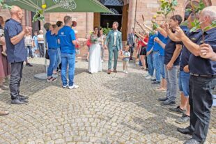 Die feierliche Trauzeremonie fand in der Wallfahrtskirche Maria zu den Ketten statt. Mit viel Gefühlen und der musikalischen Begleitung durch den Musikverein Unterentersbach traten Natalie und Michael Müller vor den Traualtar. Kaplan Ferdinand Schnaiter aus Oberharmersbach durfte die Trauung vornehmen. Musikalisch sehr bewegt war der Auszug mit dem Stück »Highland Cathedral« des Musikvereins Unterentersbach. So trat das Brautpaar frisch vermählt durch das Portal der Wallfahrtskirche ins Freie. Dort warteten bereits ihre Freunde, welche sie mit einem Rosenspalier im Eheglück willkommen hießen.