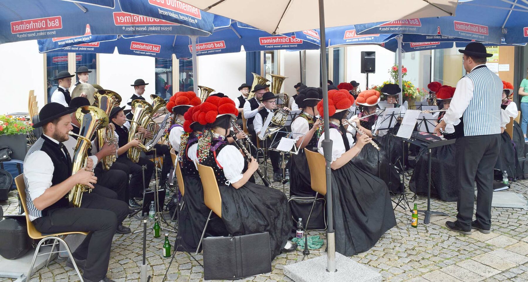 Der Platz vor dem Kultur- und Vereinszentrum füllte sich rasch und zahlreiche Musikbegeisterte genossen die musikalische Unterhaltung der Gäste aus Reichenbach bei Hornberg.