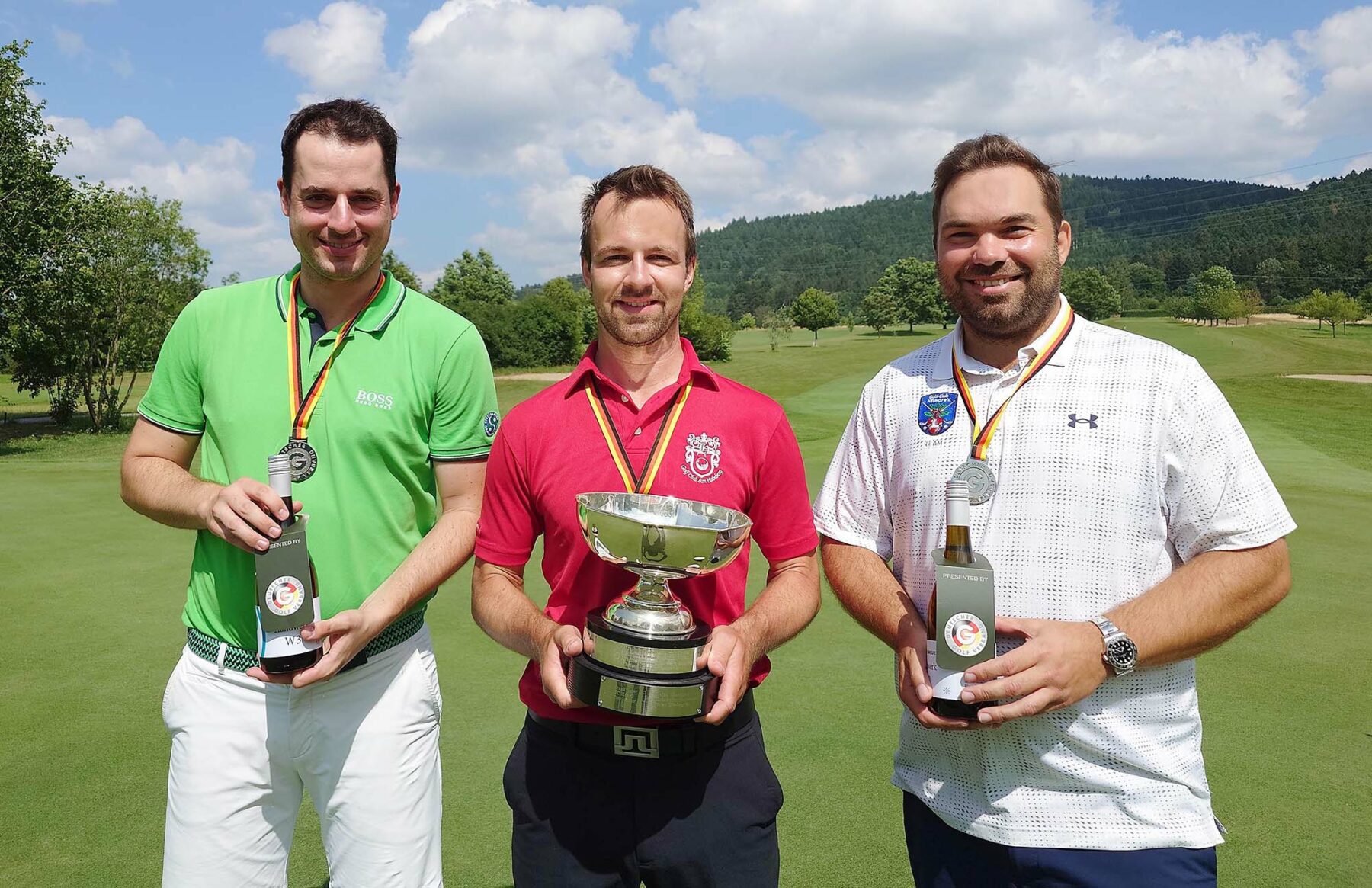 Und der frisch gebackene Meister resümierte seine Runde: „Vor allem nach hinten raus wollte ich die hohen Nummern weglassen. Ich war dankbar, dass ich mir da auch mal ein Bogey erlauben konnte. An Bahn neun habe ich das erste Mal nach dem Score gefragt – da ist es mir aufgefallen, dass Benedict so gut spielt. Genau für so einen Fall war mein Plan aber auch, selbst unter Par zu spielen. Denn damit war auch klar, dass die anderen richtig gut spielen müssen, um ranzukommen.
