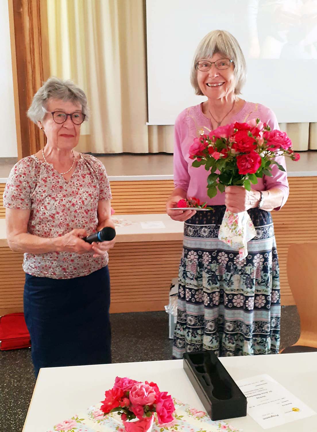 Niederberger sprach abschließend an, dass Hilfe zu organisieren und zu akzeptieren besonders wichtig sei. Der Vortrag der Medizinerin fand einen entsprechenden Widerhall bei den Senior*innen, die kräftigen Applaus spendeten. Annemarie Jäkle bedankte sich im Namen des FORUM älterwerdens bei Dr. Anna Niederberger mit einem Präsent und einem Rosenstrauß für den interessanten und informativen Vortrag.