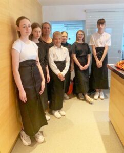 Überrascht waren die Senior*innen von den sieben Schüler*innen aus dem SBBZ Zell, die beim Service tatkräftig mithalfen. Die Schüler*innen und ihre Lehrerin Iris Ritter waren bereits am Morgen bei den Vorbereitungen für den Nachmittag beschäftigt. Engagiert und motiviert brachten sie sich ein und waren eine große Unterstützung für die Teams in Service und in der Küche.