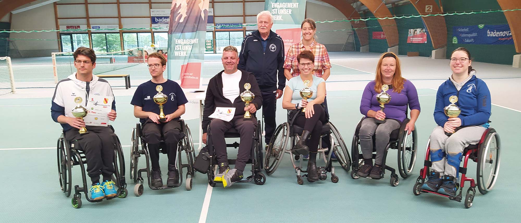 Foto: VereinMit zufriedenen Gesichtern bei Teilnehmern und Veranstaltern endete der 5. Badische Rollstuhltenniscup der Rollstuhltennisabteilung des TC Lahr, der in der Tennishalle in Zell am Harmersbach ausgetragen wurde. Das Turnier zählt zu den 10 Breitensportturnieren im Rahmen des DTB Rollstuhltennis-Race, die bundesweit stattfinden. 16 Damen und Herren aus ganz Deutschland folgten der Einladung. Die größte Gruppe mit 5 Teilnehmern stellte Rollitennis e.V. aus der Rollstuhltennis-Hochburg Windhagen.