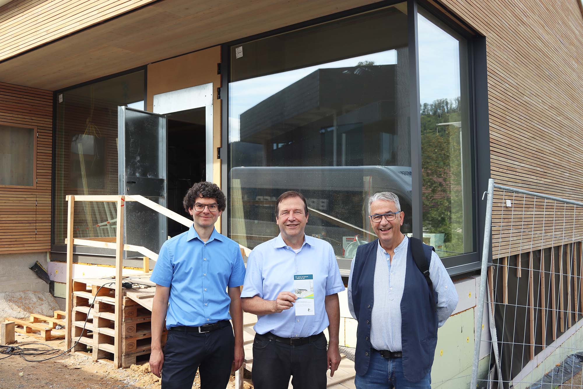 Unweit des neuen Rundofens der Zeller Keramik, direkt am Stadtpark und neben der Evangelischen Kirche gelegen, baut die evangelische Kirchengemeinde Zell a. H. derzeit ein neues Gemeinde- und Pfarrhaus. Der Vorsitzende des Kirchengemeinderates Zell, Joachim Groß, und Pfarrer Moritz Martiny aus Gengenbach zeigen dem Landtagsabgeordneten Thomas Marwein das Projekt persönlich vor Ort.