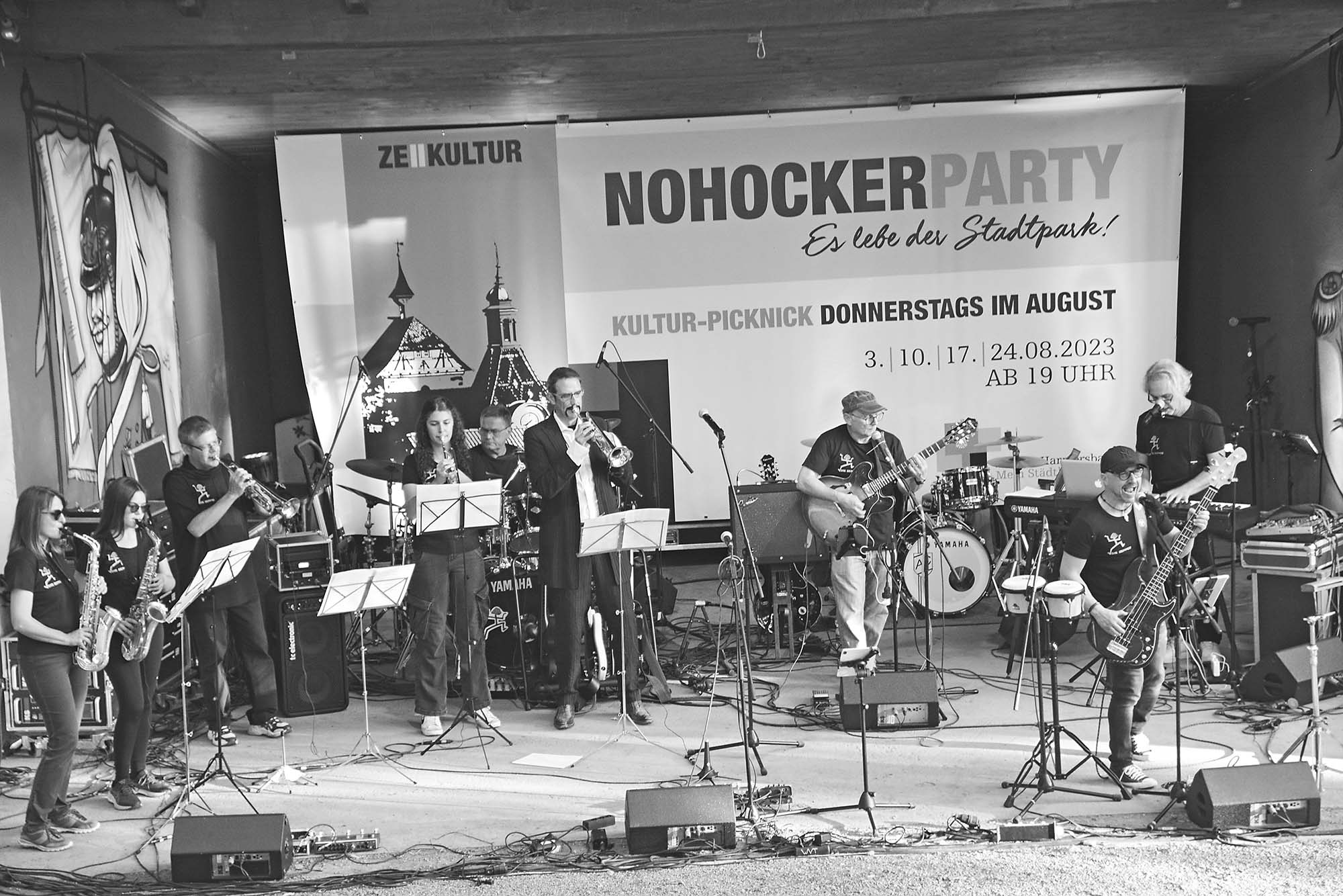 Drei Bands und rund 800 Gäste feierten gestern Abend im Zeller Stadtpark den Sommer, die Musik und das Leben. Es war eine NoHocker-Party nach Maß. Musikalisch gab es einen Stilmix aus Rock-Klassikern, Heavy-Metal und Happy-Music. Die Akteure im Stadtpark-Pavillon begeisterten mit virtuosem Können und mit mitreißenden Stimmen. Das Bewirtungsteam der Fasendgemeinschaft „Lohgass“ war im Dauereinsatz. Die Abendsonne und später ein buntes Lichtermeer sorgten für eine romantische Atmosphäre.