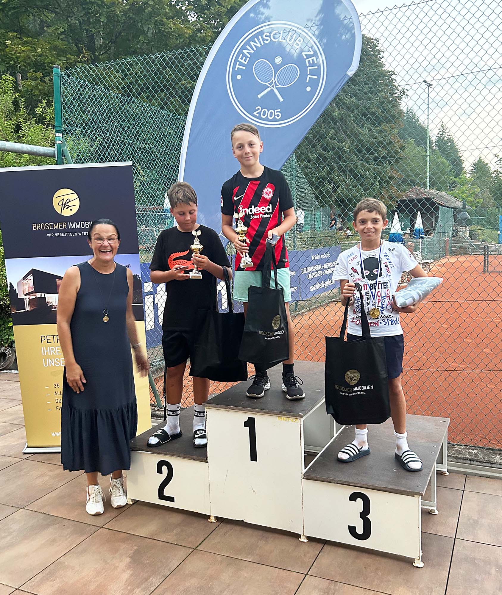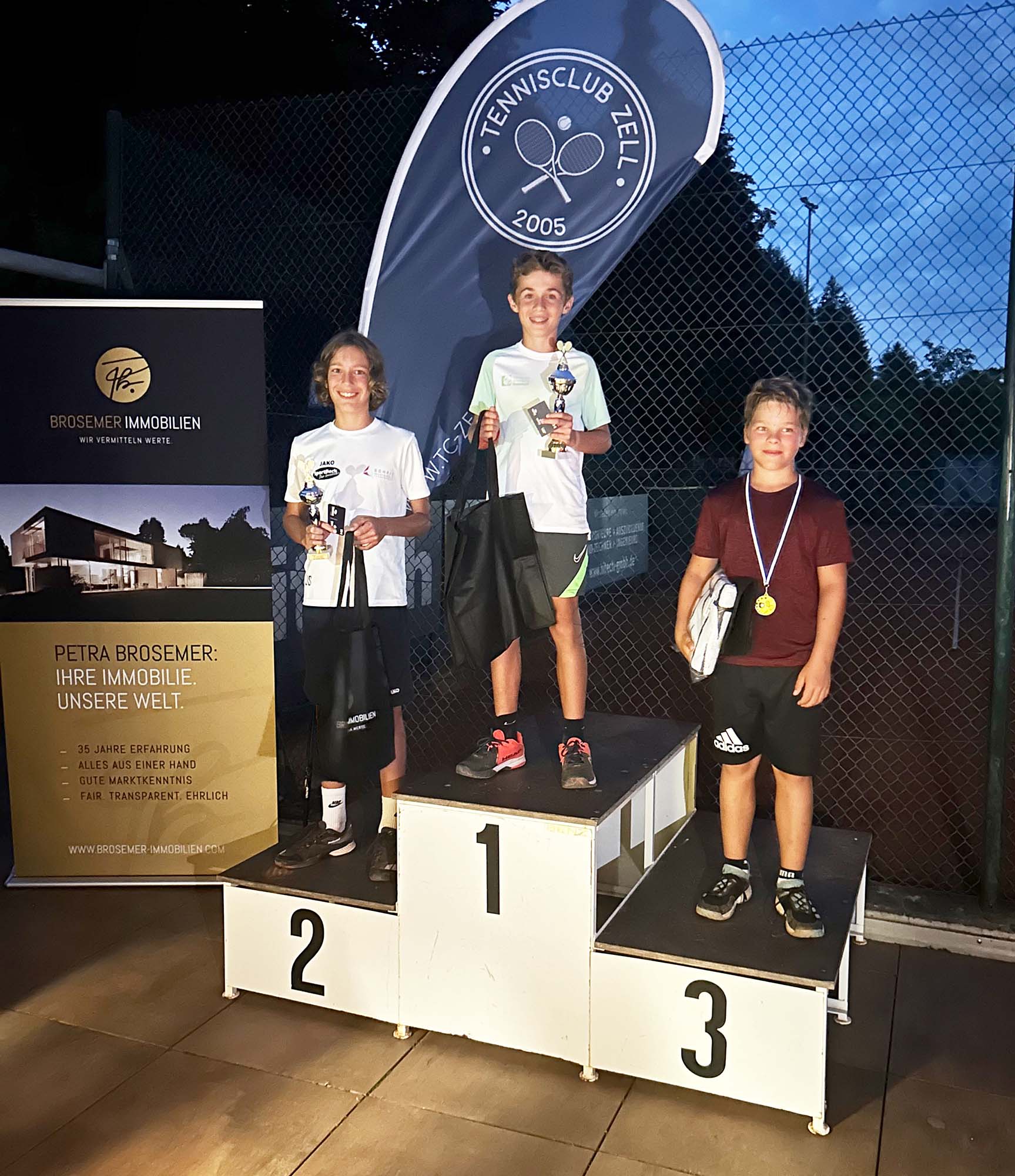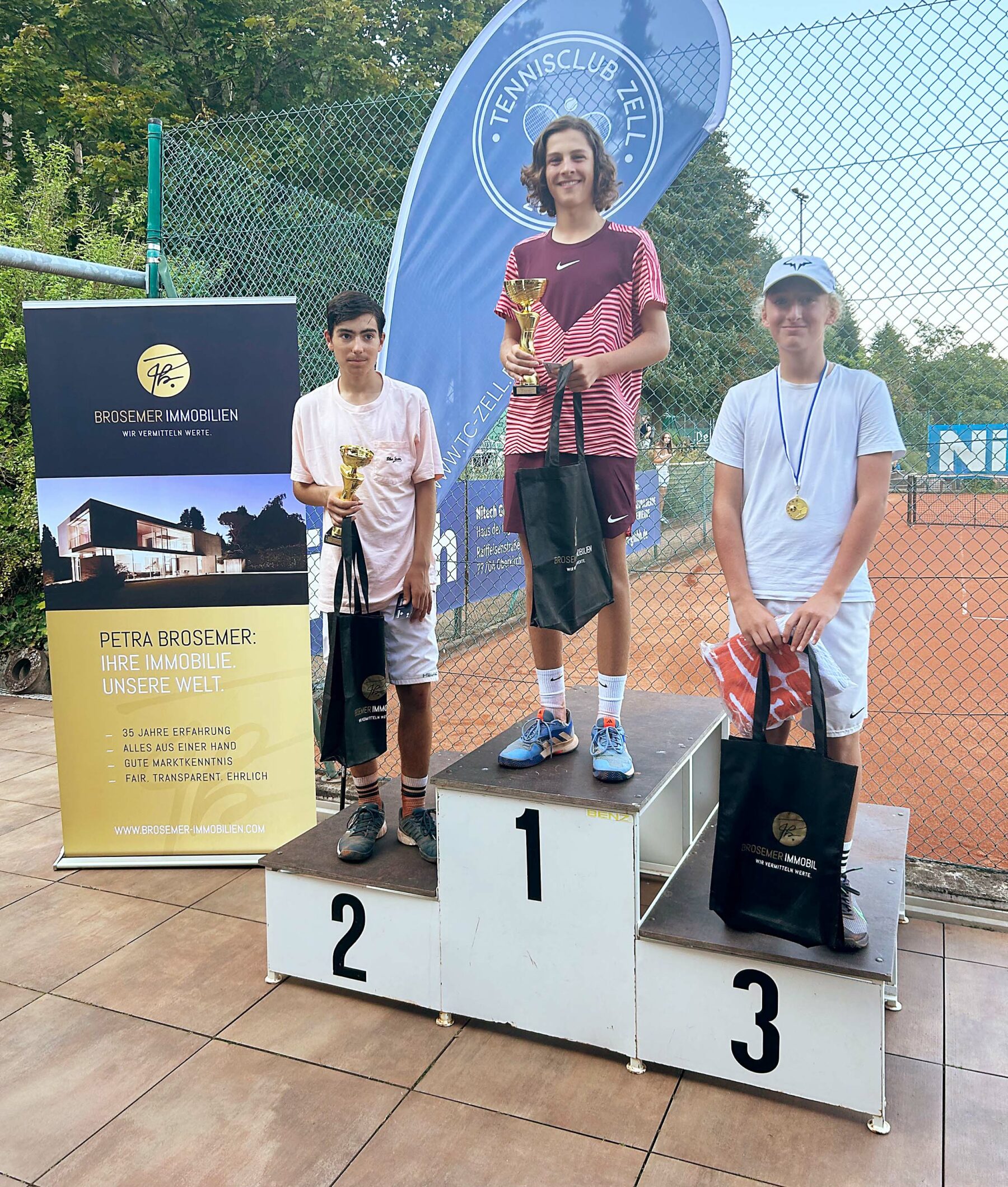 Im Finale der U12 Jungs lieferten sich der an Nummer 1 gesetzte und Titelverteidiger Elias Haar vom TC Wasenweiler und der Goldscheurer Gino Hoferer einen Tenniskrimi, den der Favorit erst im Matchtiebreak zum 7:5, 5:7, 10:8 für sich entschied. Den dritten Platz sicherte sich Silas Weiß (TC Gernsbach) durch einen glatten Sieg über Lucas Schäfer vom TC Oberkirch. Für die beiden Zeller Jungs Amadeus Künstle und Maximilian Hainz war schon nach dem Achtelfinale Schluss.