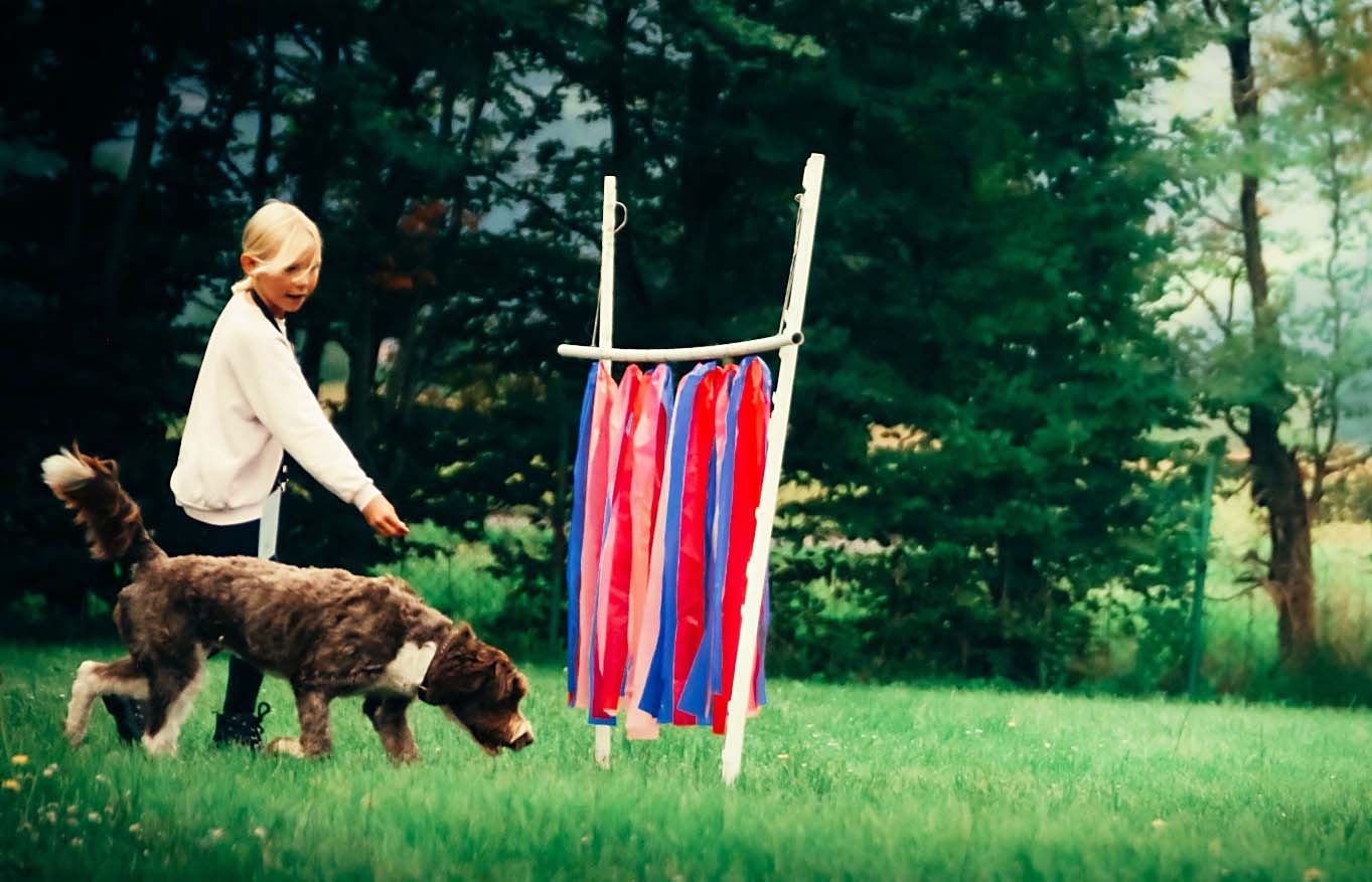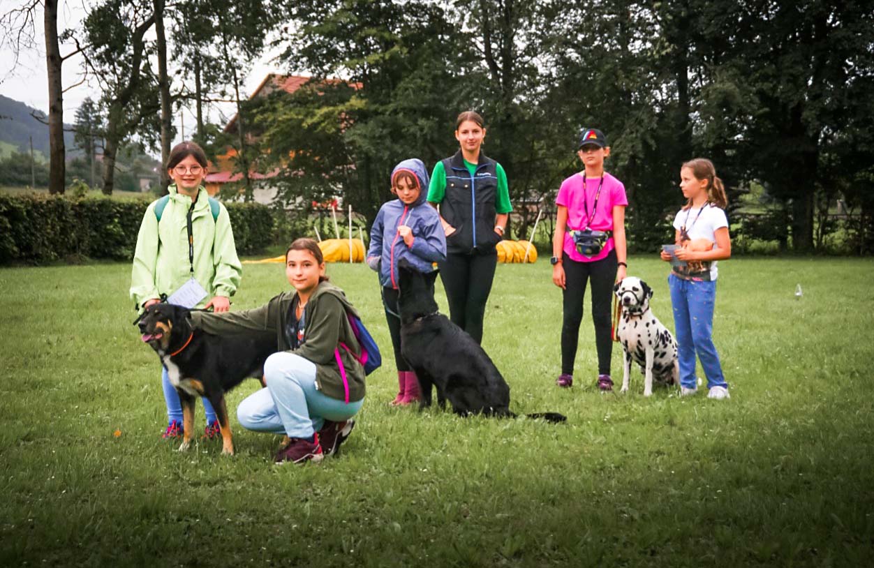 An zahlreichen Stationen probierten die Kinder ihre Geschicklichkeit im Umgang mit dem Hund aus. Über eine Bändergasse mit unterschiedlichsten Materialien, eine Tast straße, eine Tunnelallee und Bälle-und Wasserbad war ein vielfältiger Hindernisparcours zu überwinden. Manchmal wurden die Teilnehmer nicht nur von unten, sondern auch von oben nass, aber das Wetter hat dem Spielspaß keinen Abbruch geleistet.