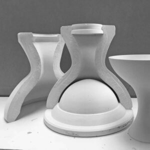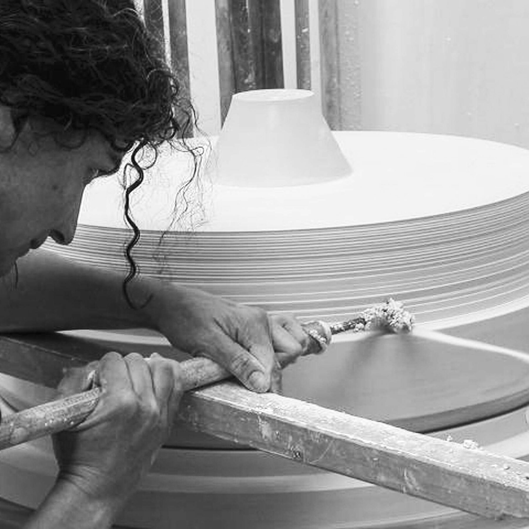 Heute stellt die Künstlerin ihre Formen im Gießverfahren her. Die rotationssymmetrischen Formen drechselt sie auf der Gipsabdrehscheibe. Ruff liebt die Farben und Formen der 50er Jahre: „Sie vermitteln für mich eine wohltuende Leichtigkeit und sind somit wieder Inspiration“. Beim Dekor legt sie Wert auf die Homogenität der Oberfläche. Dadurch erzielt sie eine spezielle ästhetische Wirkung.