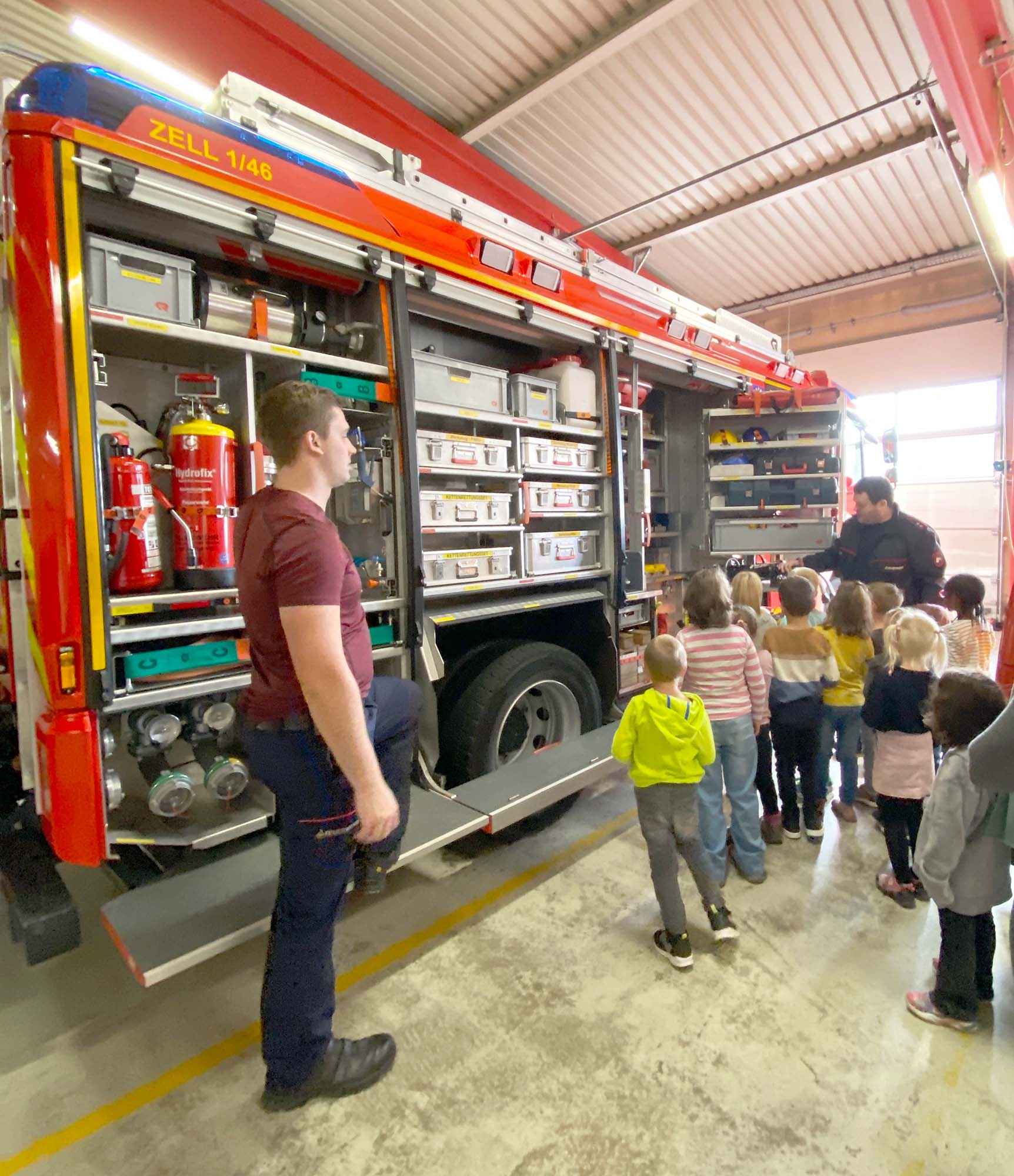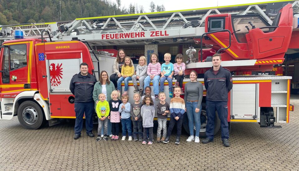 Schulanfänger des Kindergartens „Villa Regenbogen“ zu Besuch bei der Feuerwehr Zell a. H.