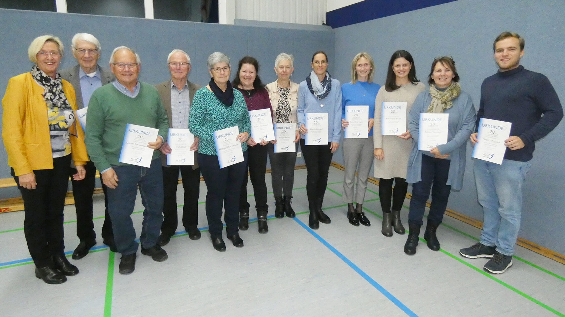 Weitere Ehrungen für langjährige Mitgliedschaften folgten. 40 Jahre (goldene Vereins nadel): Hermann Heizmann, Birgit Stein, Rolf Stötzel, Stefan Lehmann, Klemens Weisser (langjähriger Zweiter Vorsitzender – „ich kann mir keinen Besseren für das Amt vorstellen“, so Sybille Nock). 30 Jahre (silberne Vereinsnadel): Elisabeth Antes-Sturm, Ute Berger, Carmen Burger, Marianne Burger, Monika Giese, Patricia Heizmann, Heinrich Muser, Waltraud Rothmann. 20 Jahre (bronzene Vereinsnadel): Luitgard Matt, Erich Dold, Julia Heizmann, Manfred Hermann, Hildegard Kornmayer, Bianca Neumaier, Mandy Rumpel, Annalena Schnurr, Günter Schwendemann, Sabine Weisser.