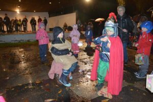 Mehr Wetterglück hatte der Kindergarten „Villa Regenbogen“ am gestrigen Dienstagabend. Der Novemberregen legte eine Pause ein und so konnte der Laternenzug trockenen Fußes durch den Stadtpark und durchs Wohngebiet Mittler Eckfeld ziehen.